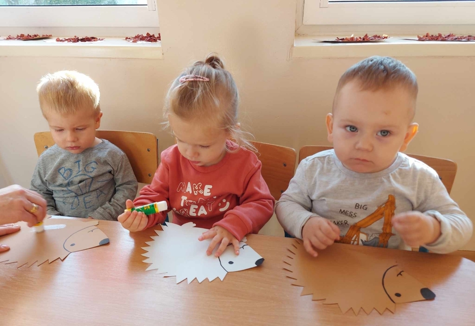 Dziś Pszczółki wykonały piękne prace plastyczne- jeżyka.