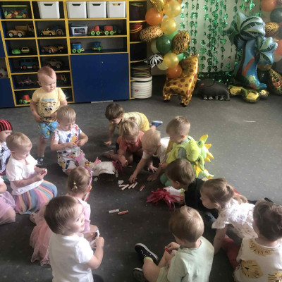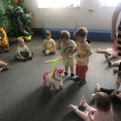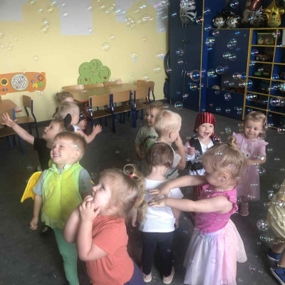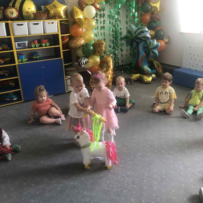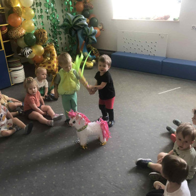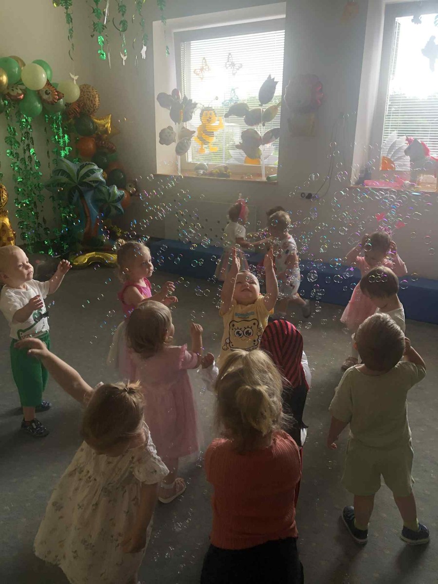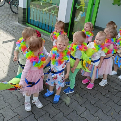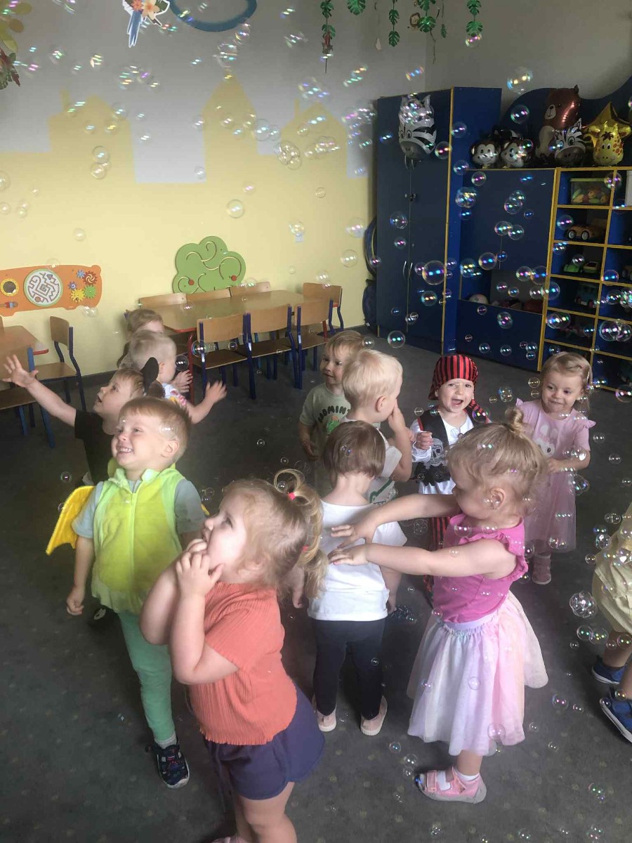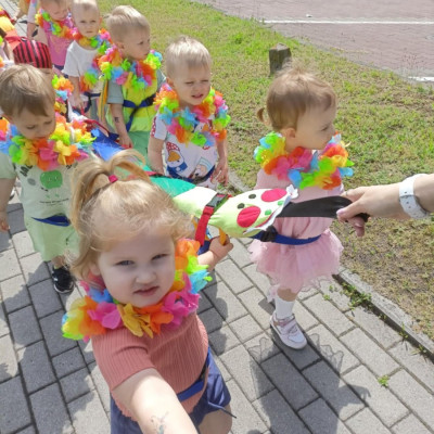 Zdjęcia przedstawiają dzieci podczas zabaw z okazji Dnia Dziecka.