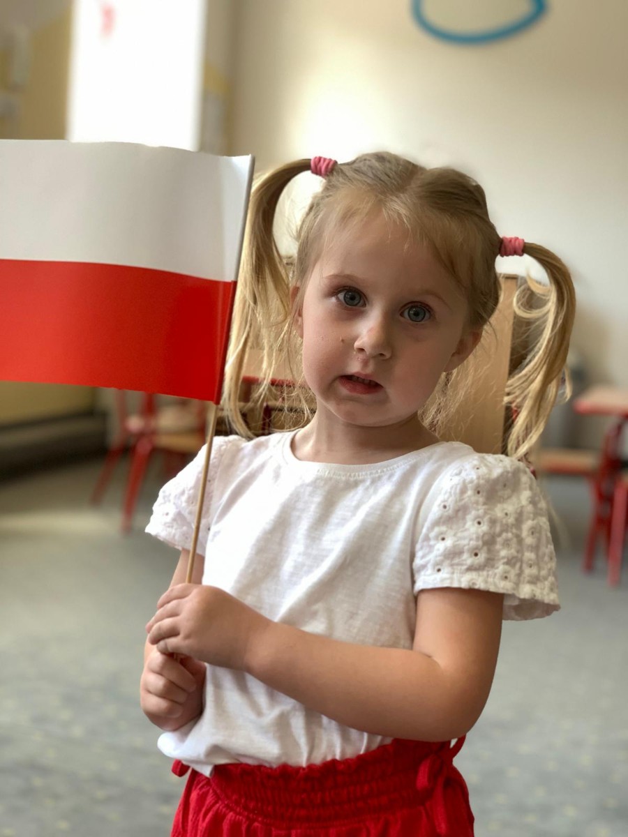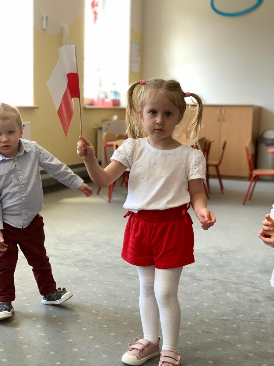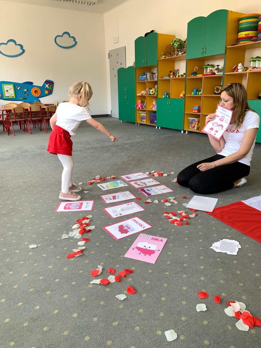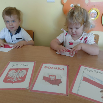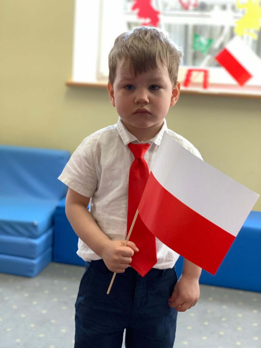 Zdjęcia przedstawiają dzieci świętujące majowe Święta