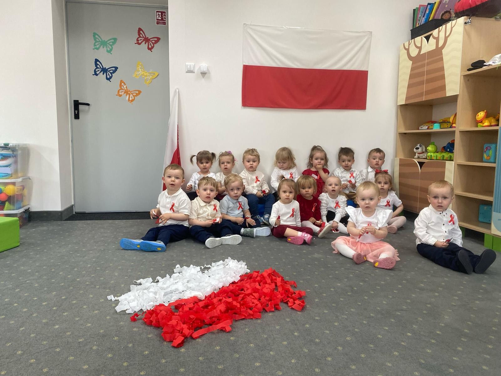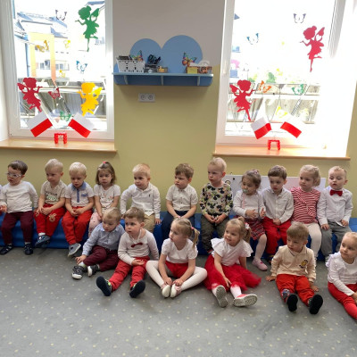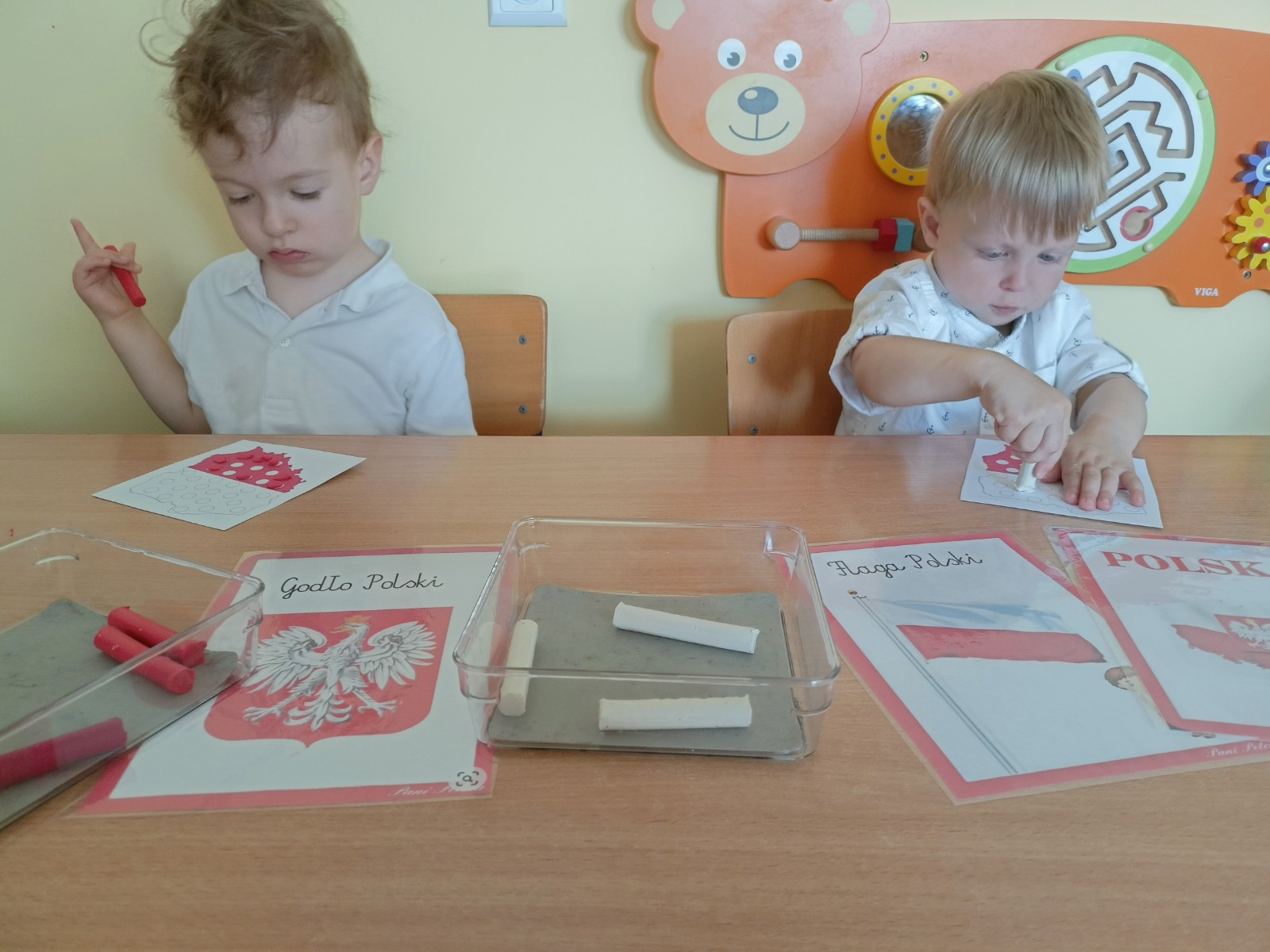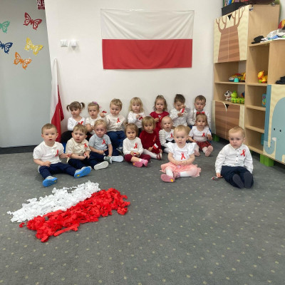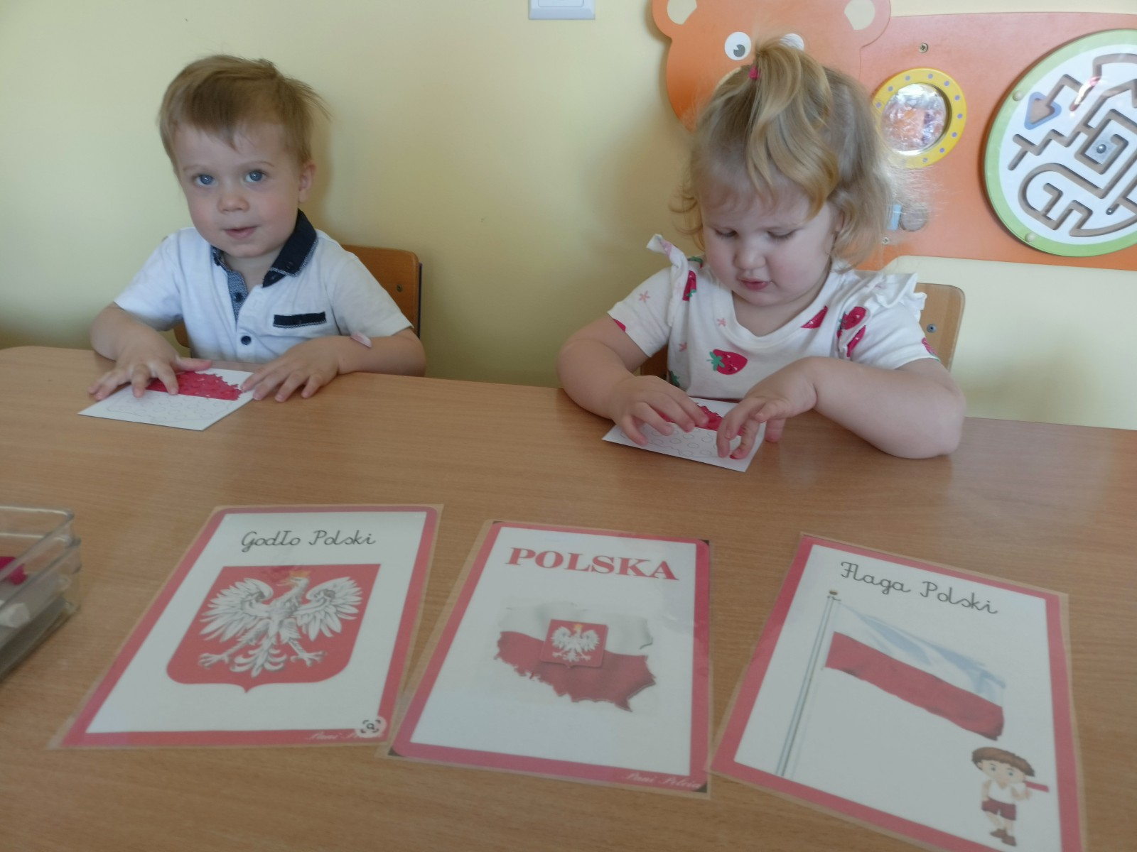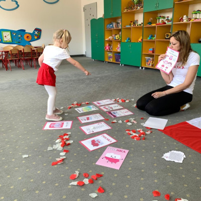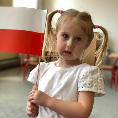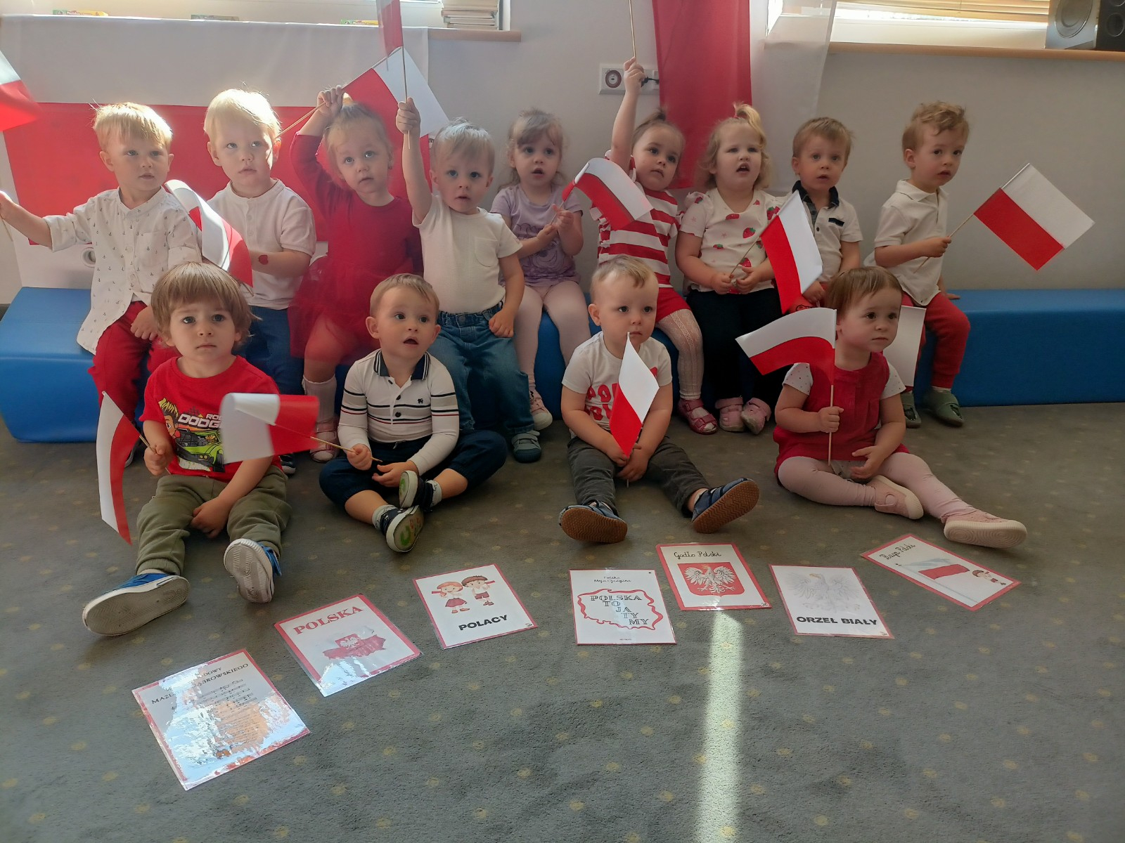 Zdjęcia przedstawiają dzieci świętujące majowe Święta