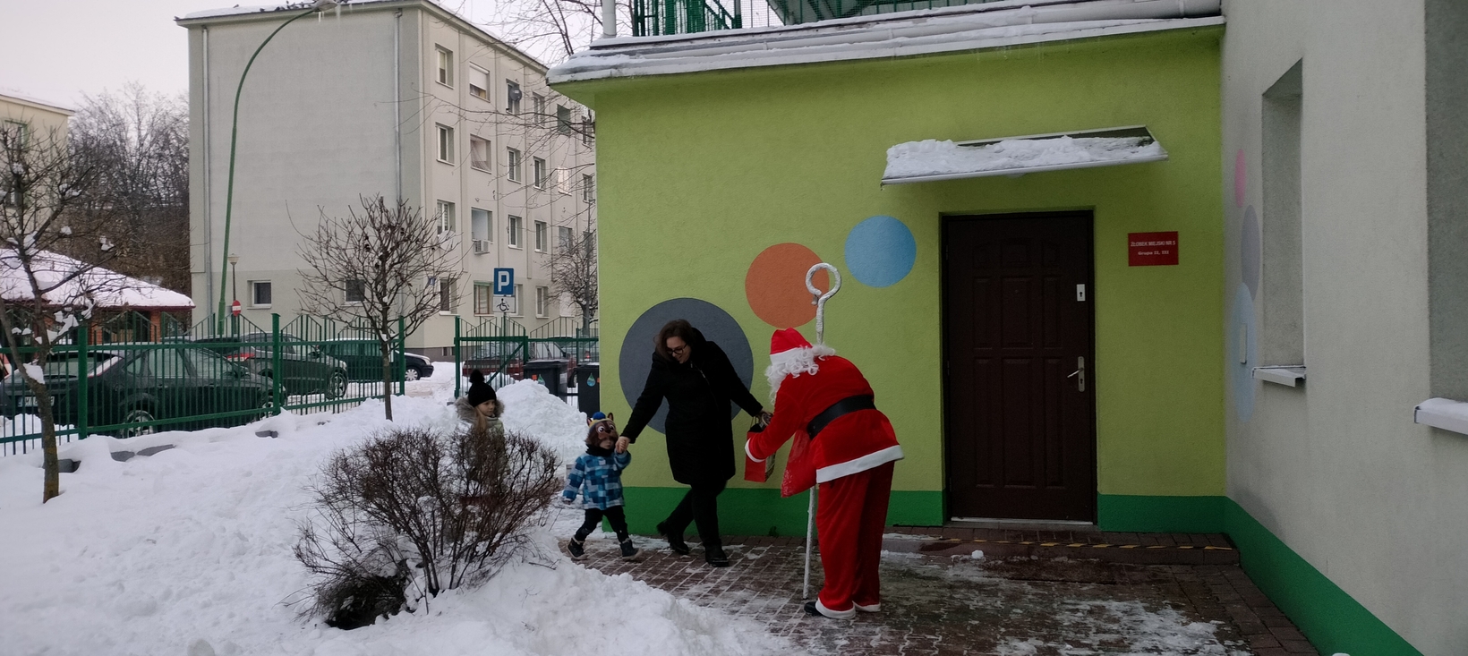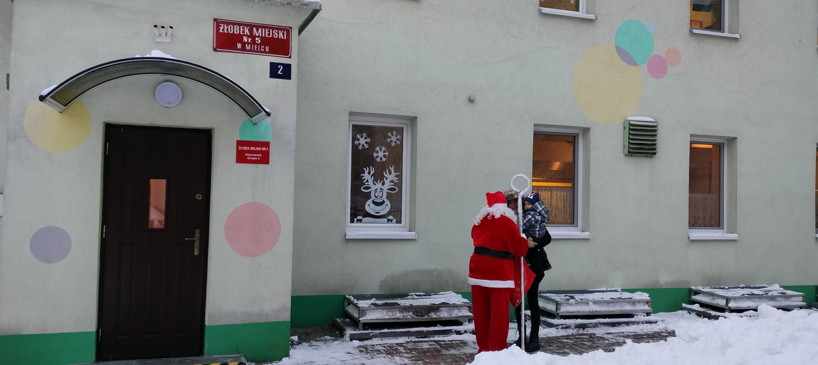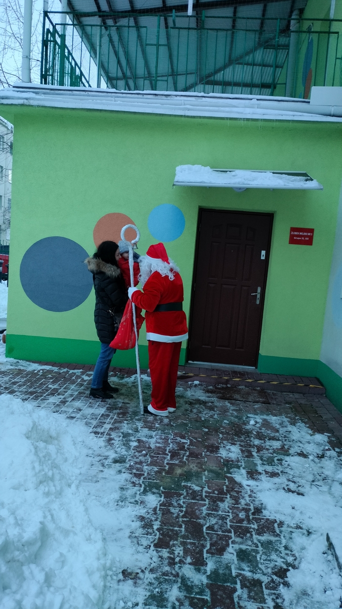 Mimo mrozu Święty Mikołaj ?witał wszystkich podopiecznych Żłobka uśmiechem oraz słodkim poczęstunkiem???. Dla niektórych maluszków było to pierwsze spotkanie ze Świętym. Dziękujemy Mikołaju za to poranne powitanie i ciepłe uściski. Cieszymy się, że przybyłeś do nas z pięknymi podarkami???.