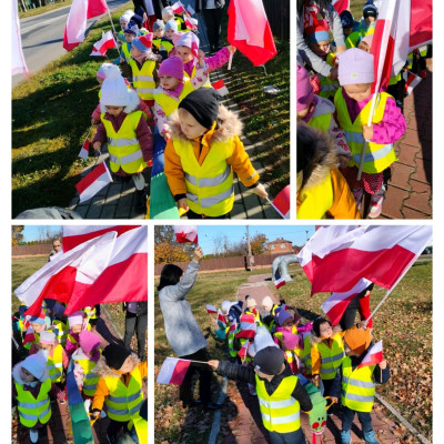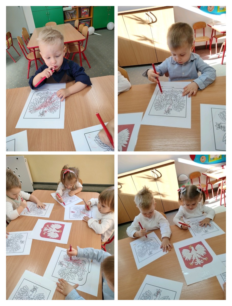 Zdjęcia przedstawiają dzieci podczas tematycznych zajęć z okazji świata 11 listopada