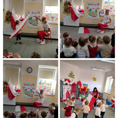 W dniu dzisiejszym w naszej grupie odbyły się zajęcia związane z Świętem Odzyskania Niepodległości przez Polskę. Celem zajęć było przybliżenie dzieciom w prosty i przystępny sposób pojęcia ojczyzny, symboli narodowych oraz znaczenia tego wyjątkowego dnia.