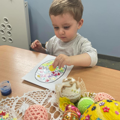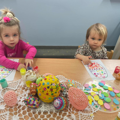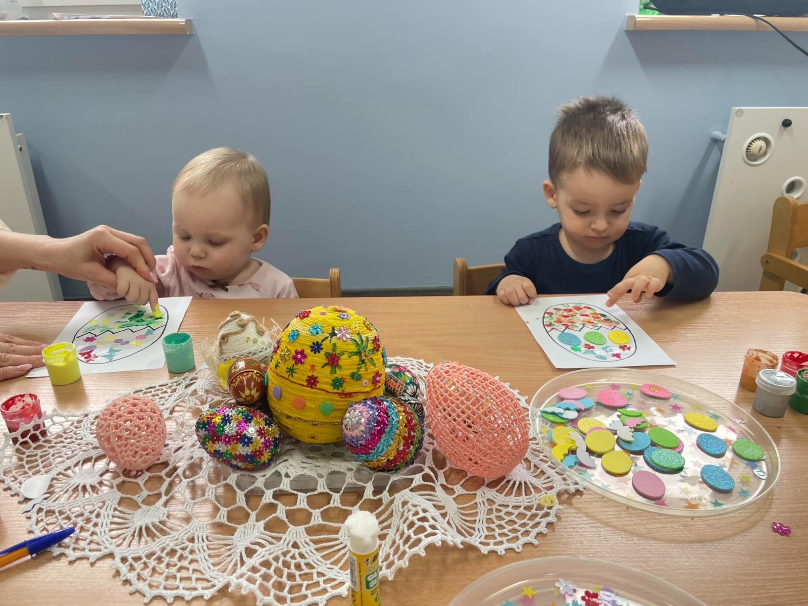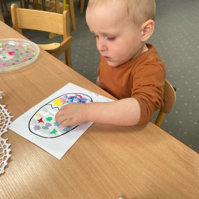 Zdjęcie przedstawia dzieci wykonujące pracę plastyczną