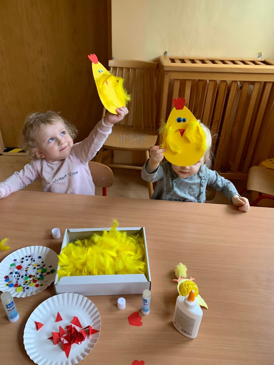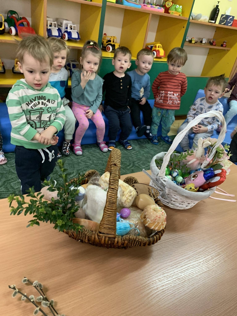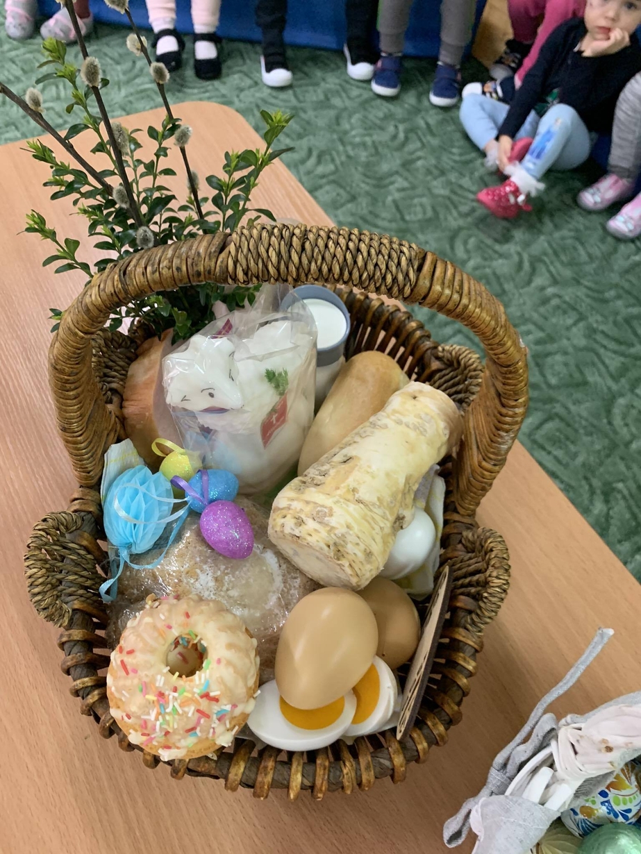 Dzieci uwielbiają przygotowania do świąt, jednak na pewno nie wszystkie tradycje i zwyczaje są im dobrze znane. Dzisiejszy dzień był okazją do rozmowy o symbolice świąt i towarzyszących im obyczajach??. Jedną z tradycji jest przygotowanie koszyczka wielkanocnego z pokarmami, które po poświęceniu wykładamy na stół w Wielką Niedzielę. Dziś wspólnie przygotowaliśmy święconkę w koszyczku?. Dzieci zobaczyły oraz dotykały rzeczy, które według tradycji powinny się obowiązkowo w tym świątecznym koszyku znaleźć. Przygotowaliśmy także świąteczne kurczaczki, które pięknie zdobią nasz żłobkowy hol.