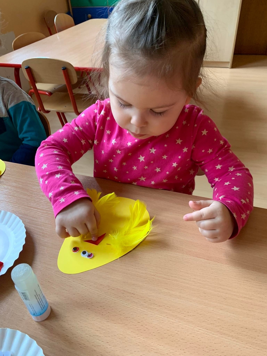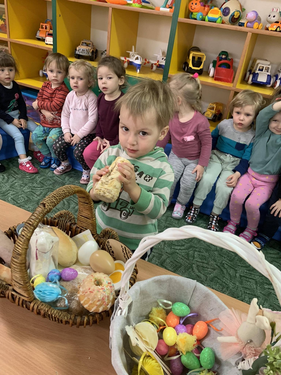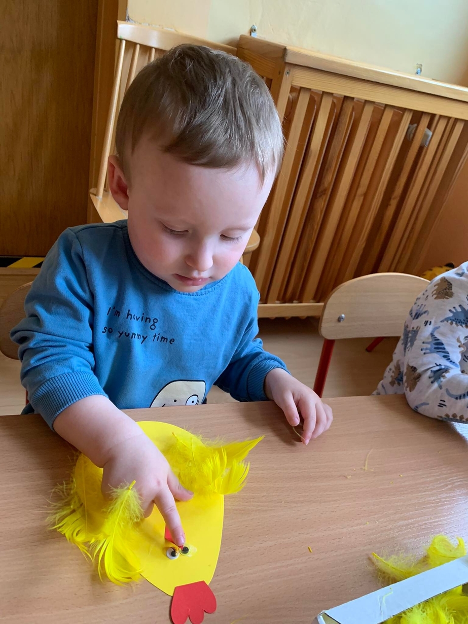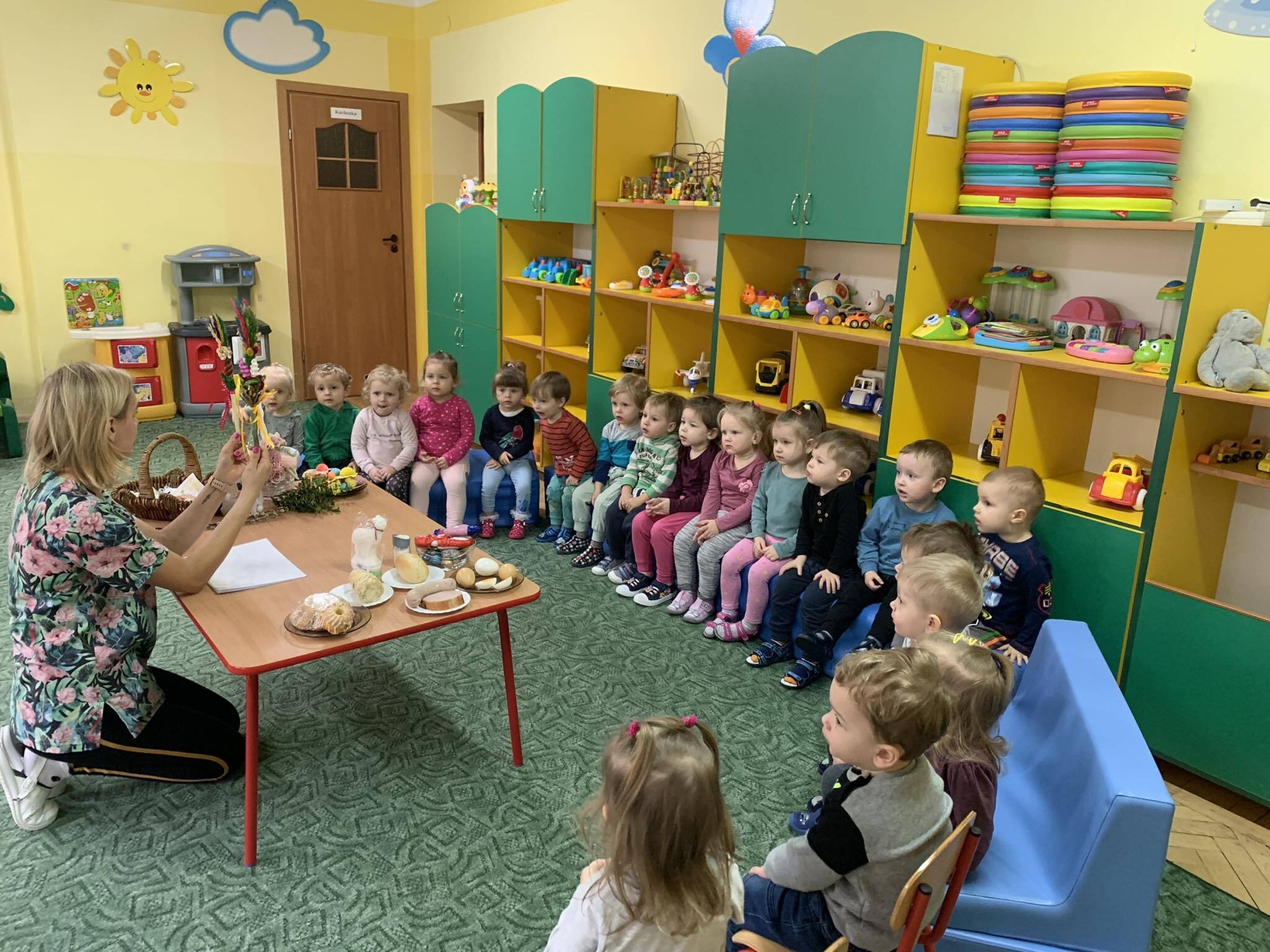 Dzieci uwielbiają przygotowania do świąt, jednak na pewno nie wszystkie tradycje i zwyczaje są im dobrze znane. Dzisiejszy dzień był okazją do rozmowy o symbolice świąt i towarzyszących im obyczajach??. Jedną z tradycji jest przygotowanie koszyczka wielkanocnego z pokarmami, które po poświęceniu wykładamy na stół w Wielką Niedzielę. Dziś wspólnie przygotowaliśmy święconkę w koszyczku?. Dzieci zobaczyły oraz dotykały rzeczy, które według tradycji powinny się obowiązkowo w tym świątecznym koszyku znaleźć. Przygotowaliśmy także świąteczne kurczaczki, które pięknie zdobią nasz żłobkowy hol.