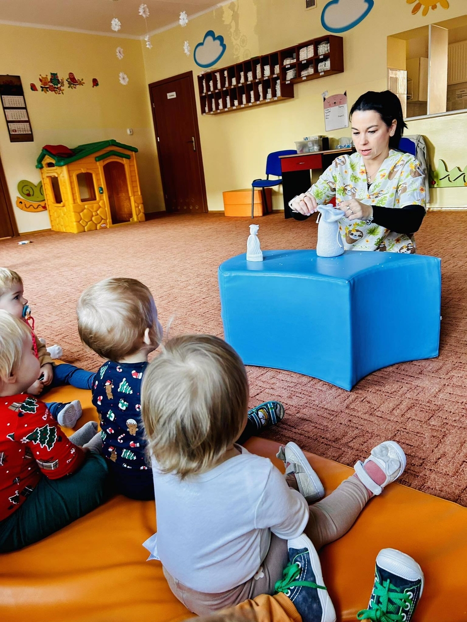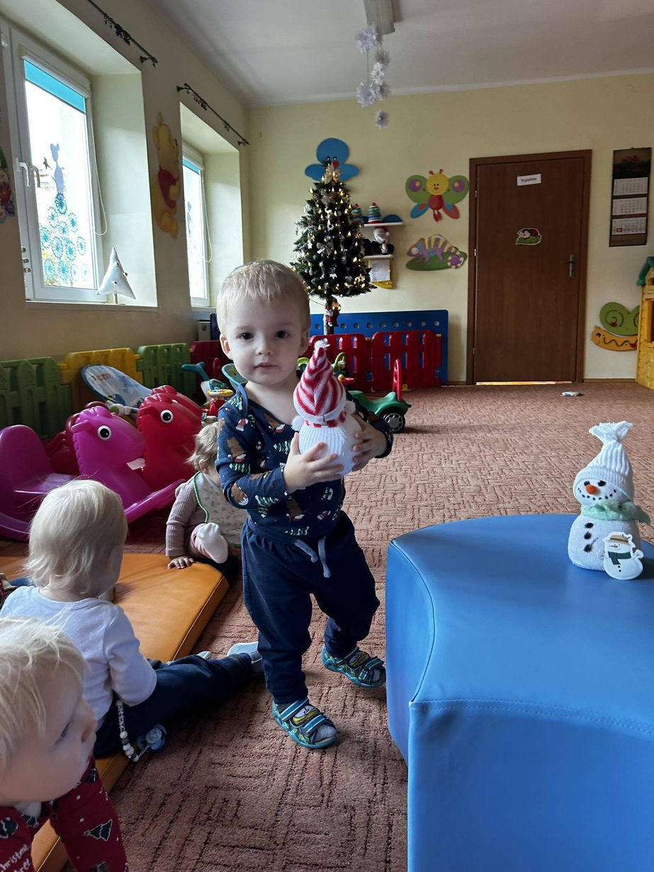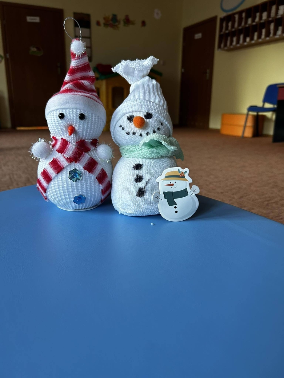 U Biedronek króluje zima. Wspólnymi siłami powstał bałwanek wypełniony ryżem, oraz obrazek zimowy. Dzieci chętnie słuchają piosenek o zimie naśladując gesty cioć.