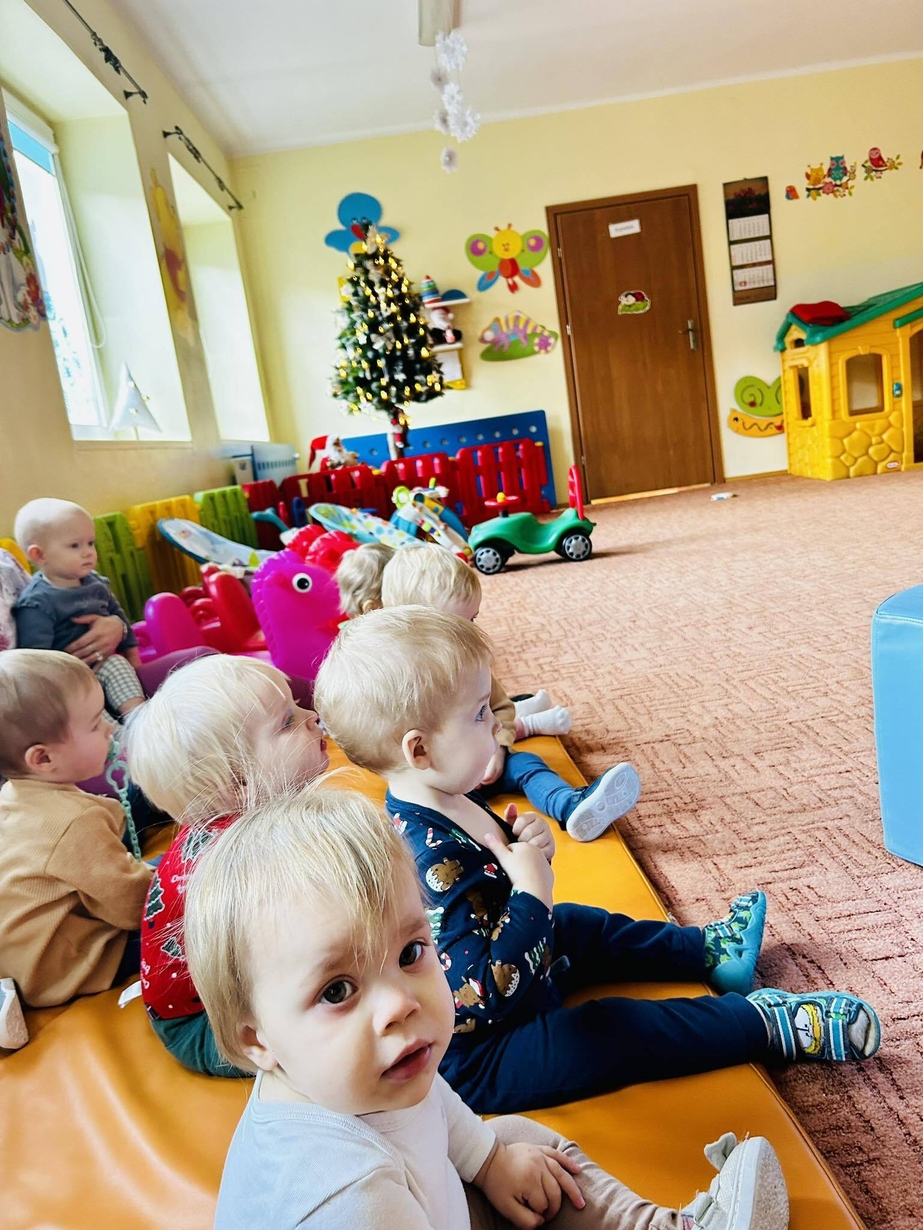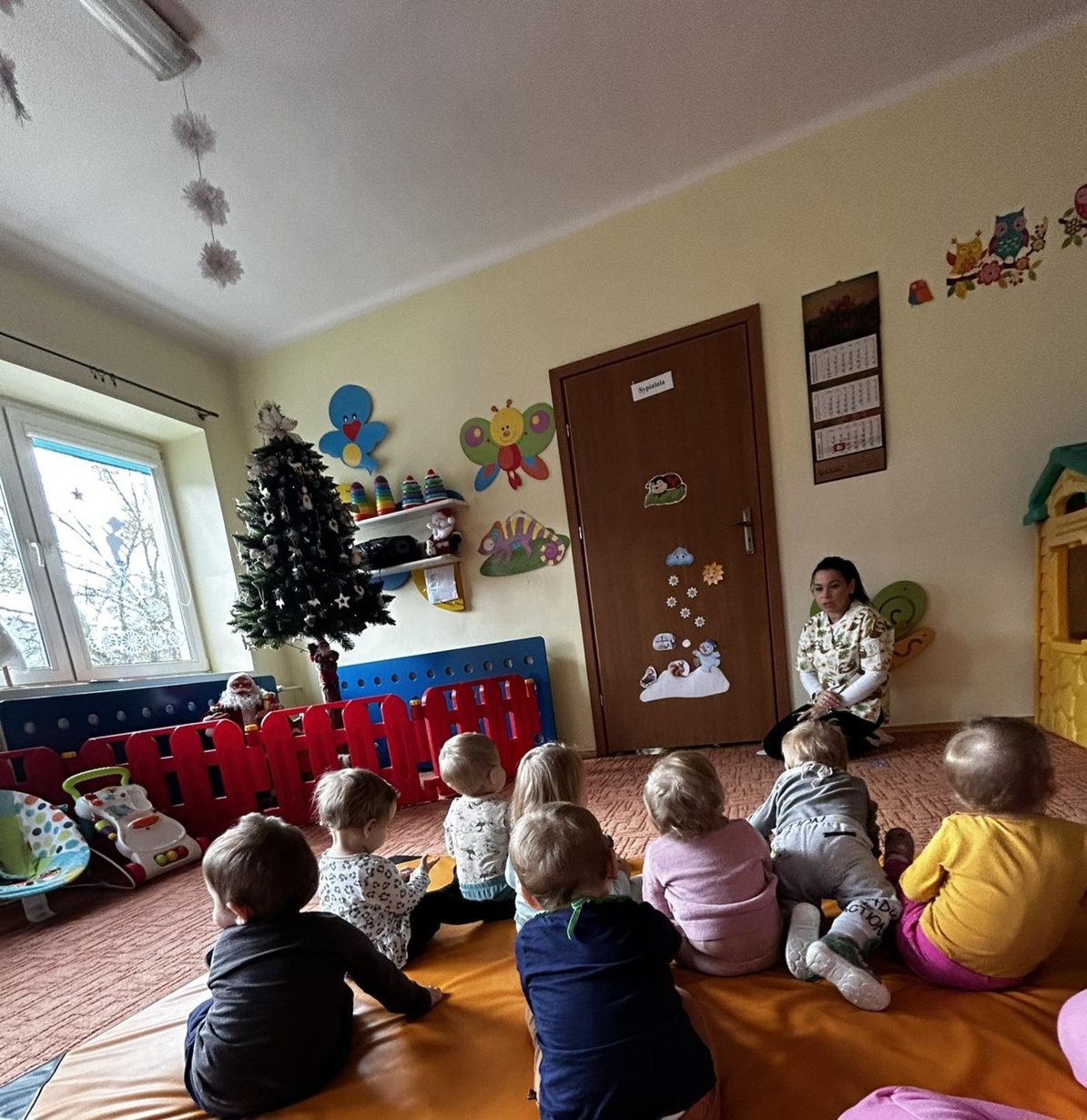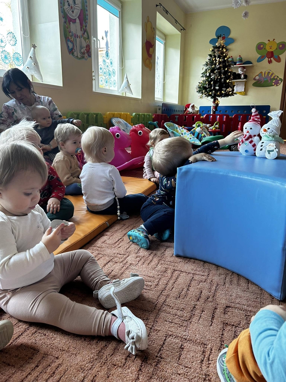 U Biedronek króluje zima. Wspólnymi siłami powstał bałwanek wypełniony ryżem, oraz obrazek zimowy. Dzieci chętnie słuchają piosenek o zimie naśladując gesty cioć.