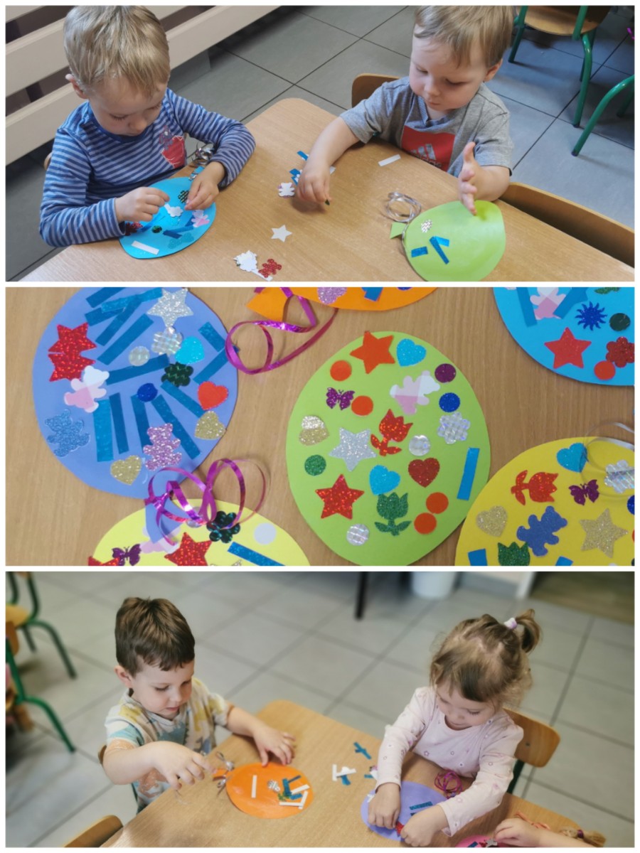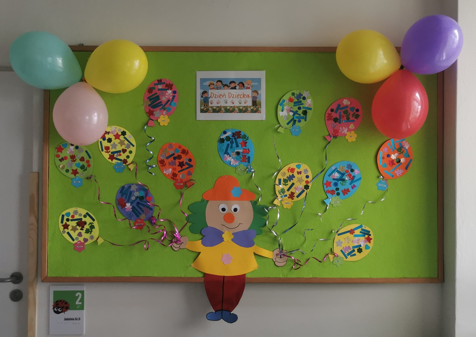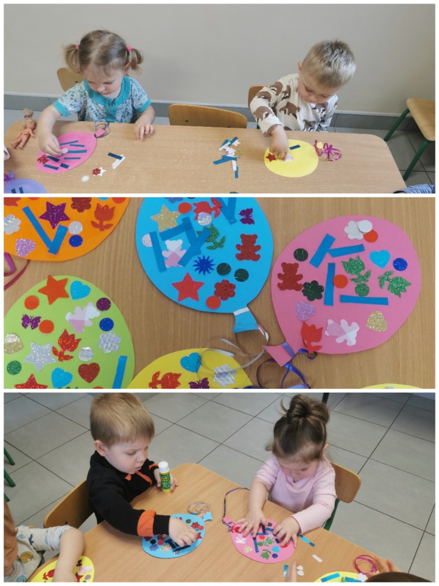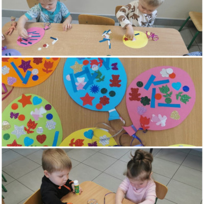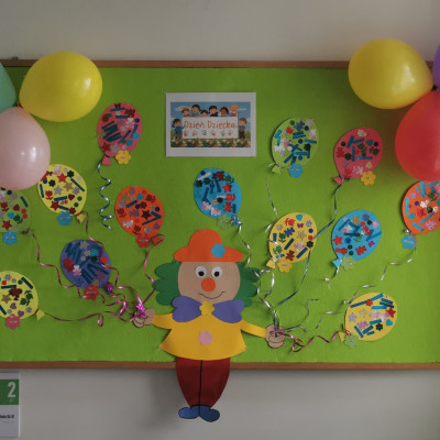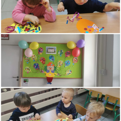 Dzisiaj w oczekiwaniu na obchody naszego święta, jakim jest Dzień Dziecka wykonaliśmy prace plastyczne. Przedstawiają one kolorowe baloniki, które dzieci ozdobiły różnymi błyskotkami i roznokolorowymi elementami. Jest kolorowo i wesoło tak jak w Dniu Dziecka. Nasze baloniki prezentuje teraz żłobkowy Klaun, który trzyma je na tablicy w żłobkowym korytarzu. Zapraszamy do podziwiania.