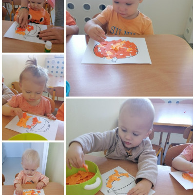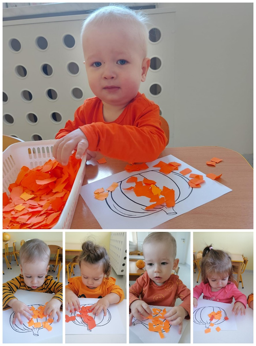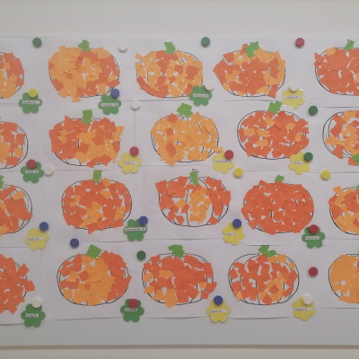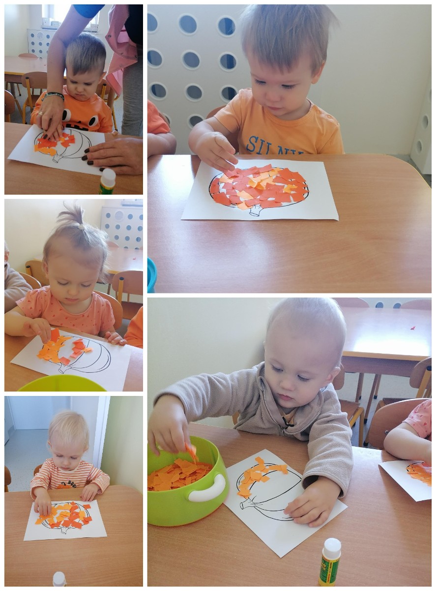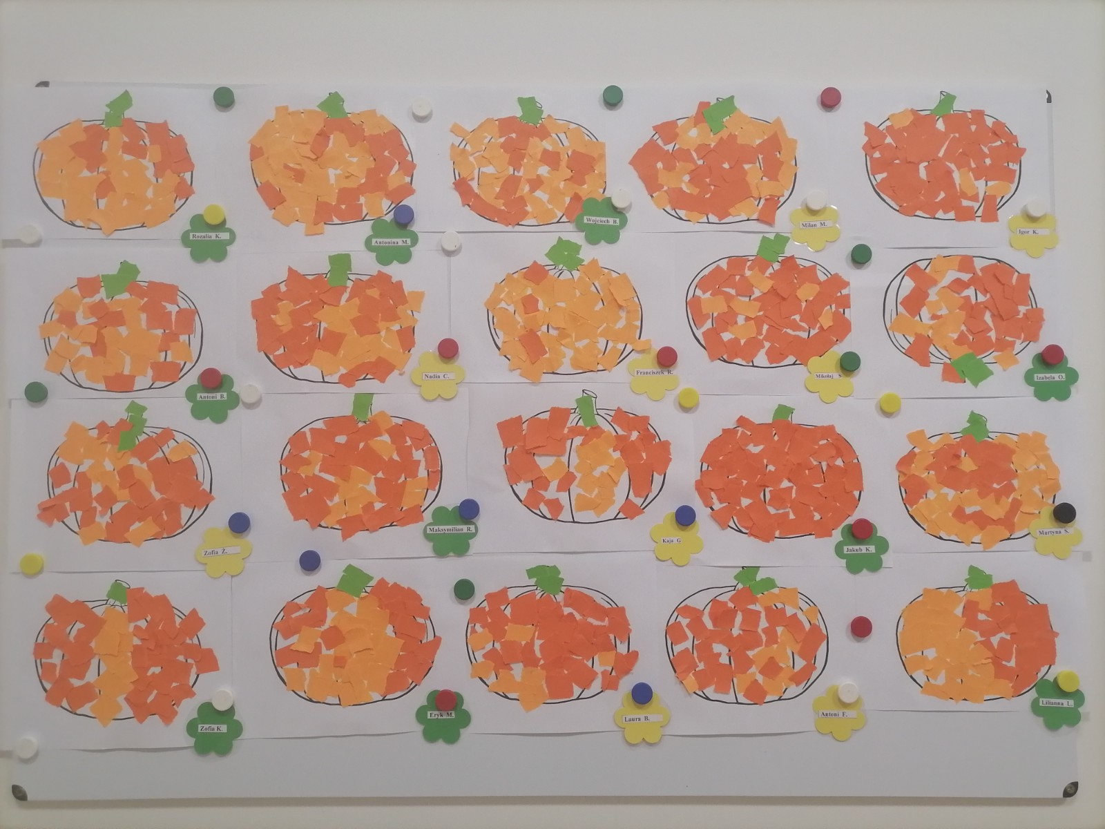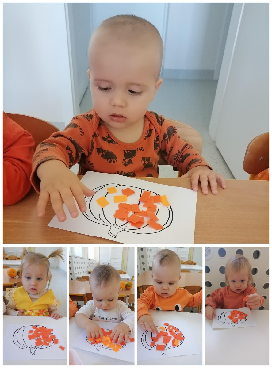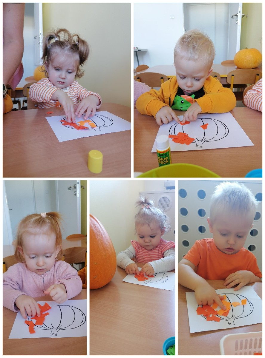 Na zakończenie dnia dzieci mogły ozdobić kolorowym papierem oczywiście w kolorze pomarańczowy piękne dynie.