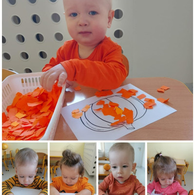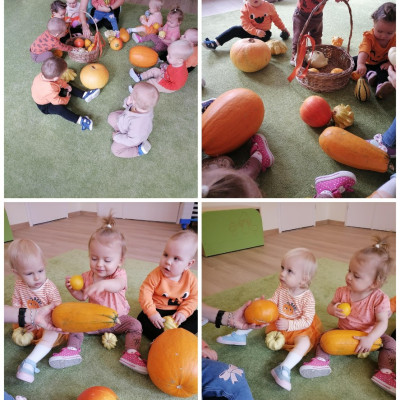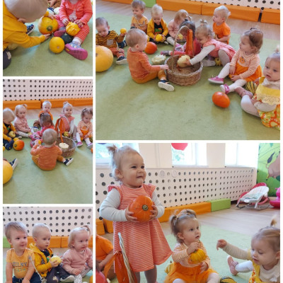 Na grupie Pszczółek obchodzimy Dzień Dyni z tej okazji wszystkie dzieci miały możliwość ubrać się w kolor przewodni pomarańczowy.