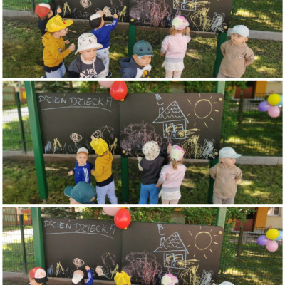 CZdjęcie przedstawia dzieci świętujące Dzień Dziecka.