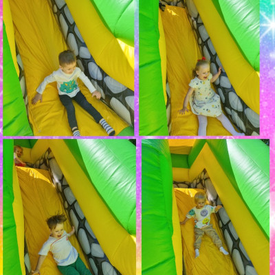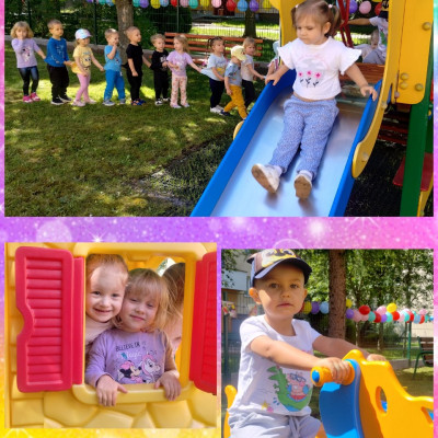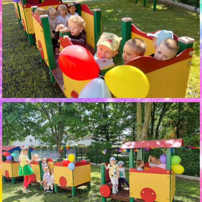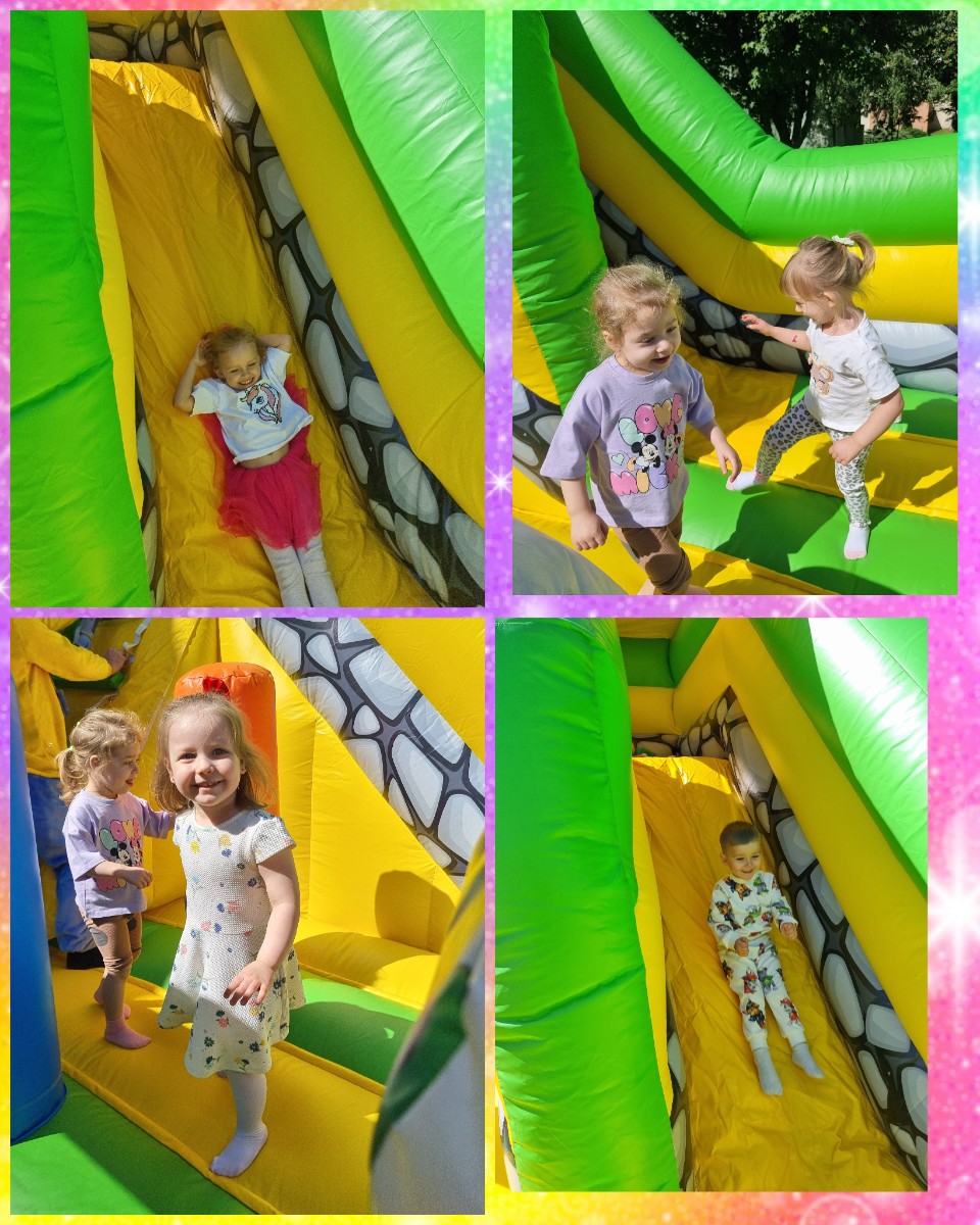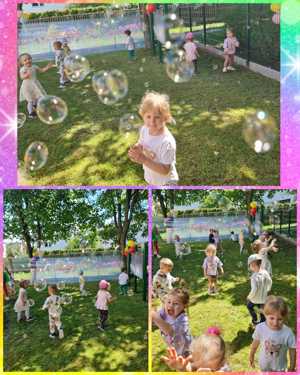 Zdjęcia przedstawiają dzieci świętujące Dzień Dziecka.