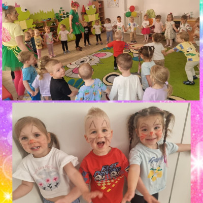 Taki też był dla naszych Żabek. W naszym żłobku tego dnia cały dzień trwała zabawa .