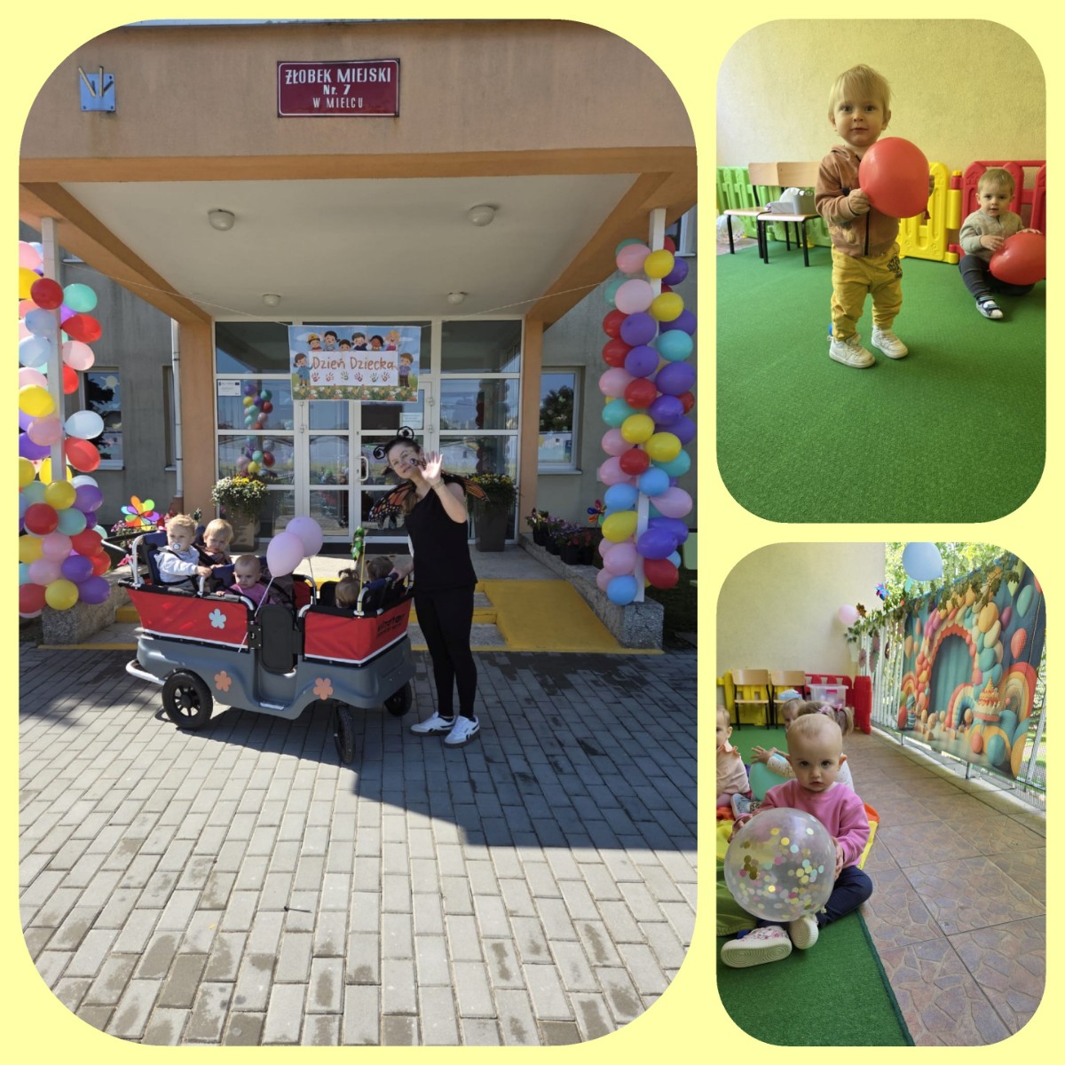 W piątek nasi podopieczni obchodzili swoje święto Dzień Dziecka .Ten dzień obfitował w wiele wspaniałych zabaw,ktòre dają dzieciom dużo radości.Były zabawy ruchowe na naszym balkonie tańce,hulańce w rytm muzyki,łapanie baniek mydlanych oraz przy użyciu kolorowej chusty podrzucanie baloników I kolorowych pileczek.Razem z grupą "pszczólek"wybraliśmy sie na wspólny spacer .Na koniec dnia nasi żłobkowicze otrzymali super prezenty.To był dzień pełen wrażeń .Wszystkim dzieciom życzymy dużo uśmiechu na co dzień 😊