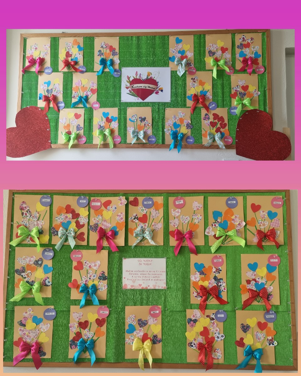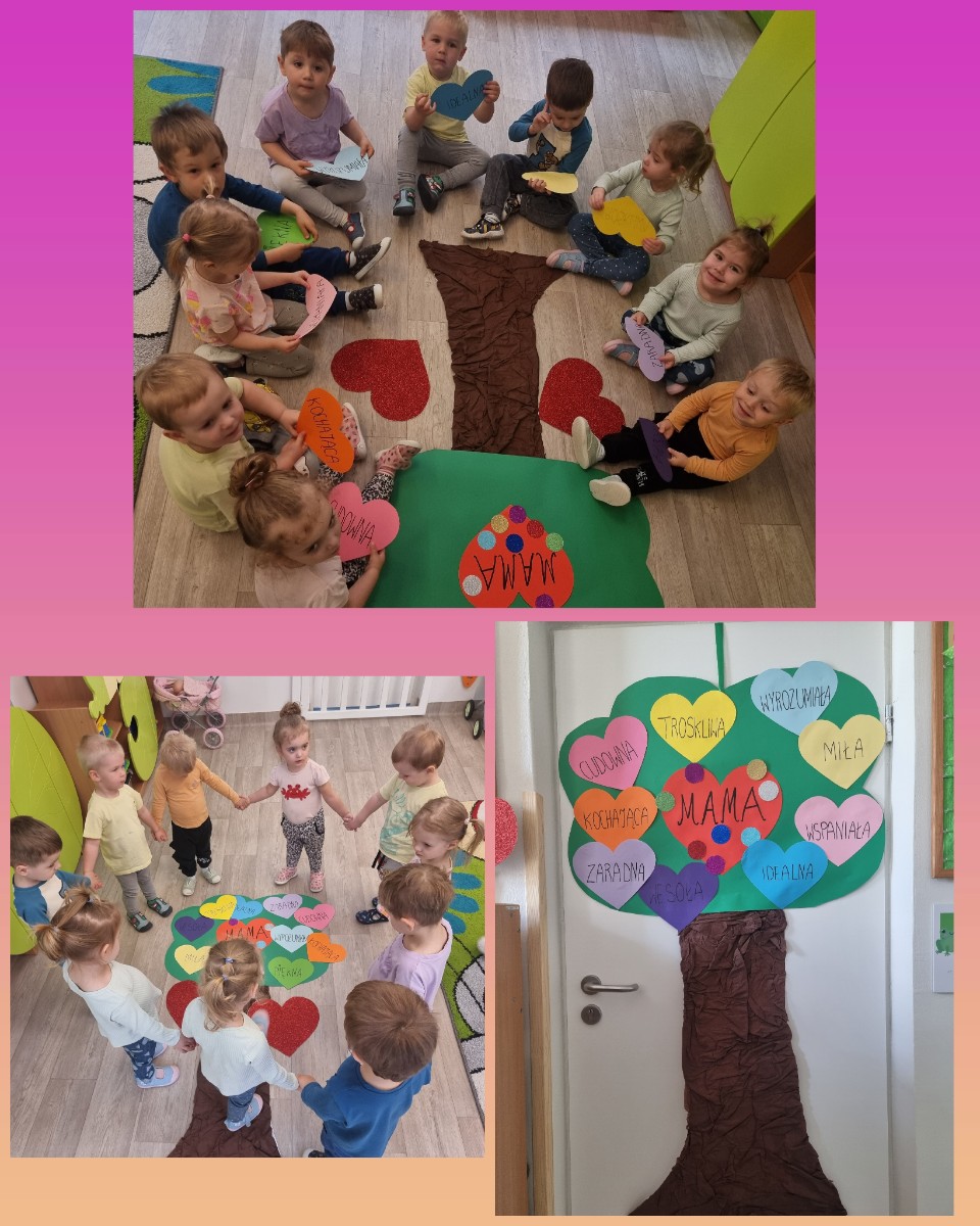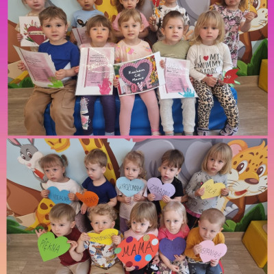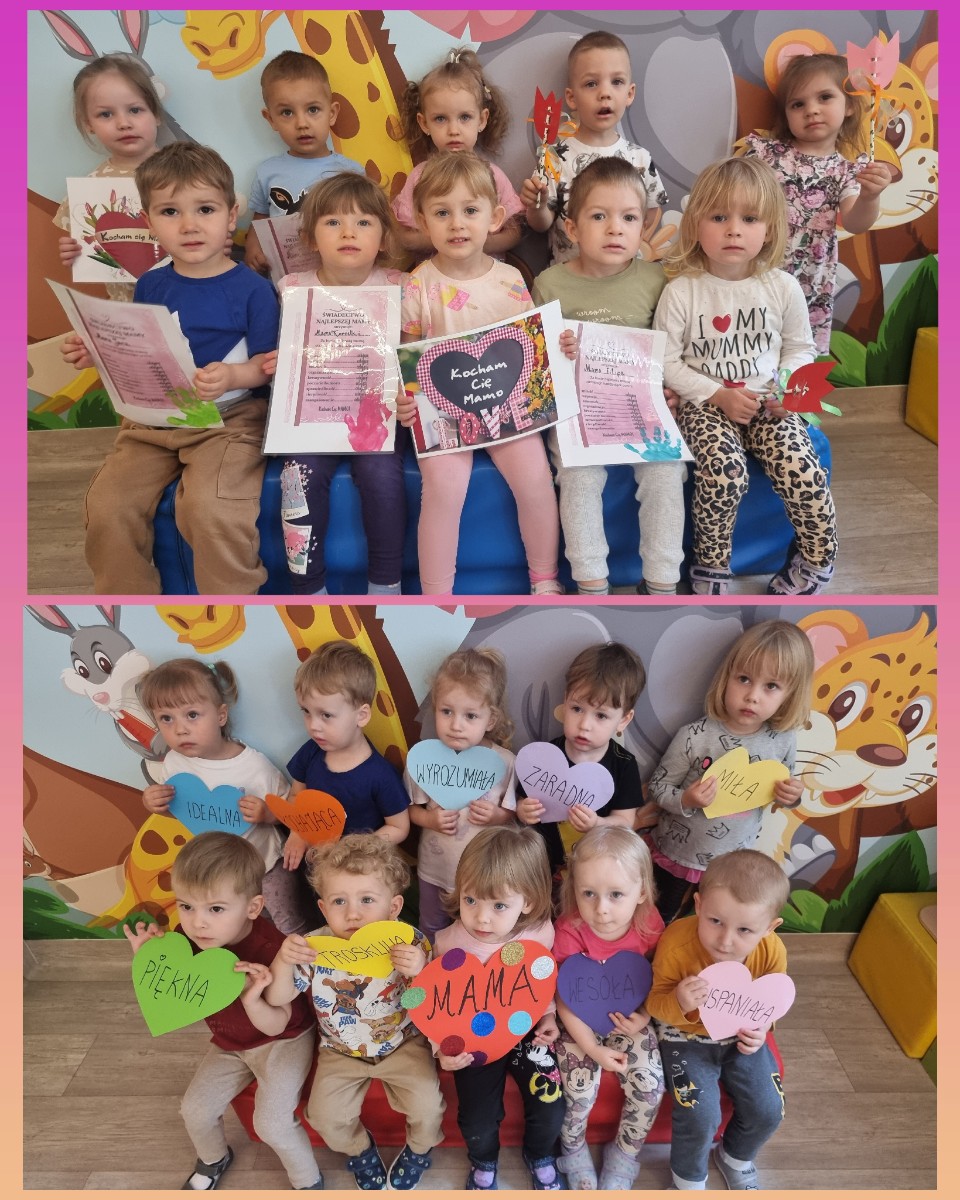 Zdjęcia przedstawiają dzieci świętujące Dzień Mamy.