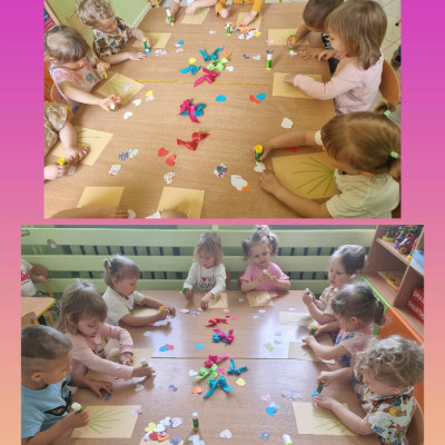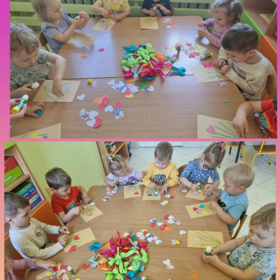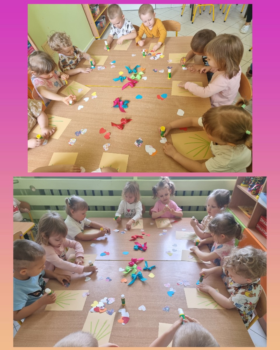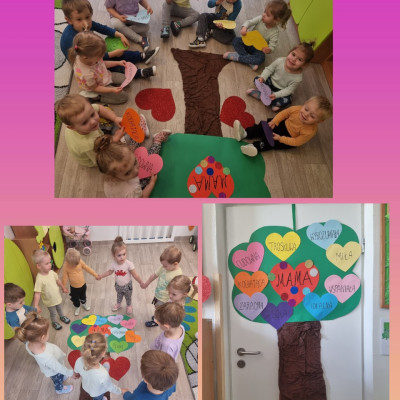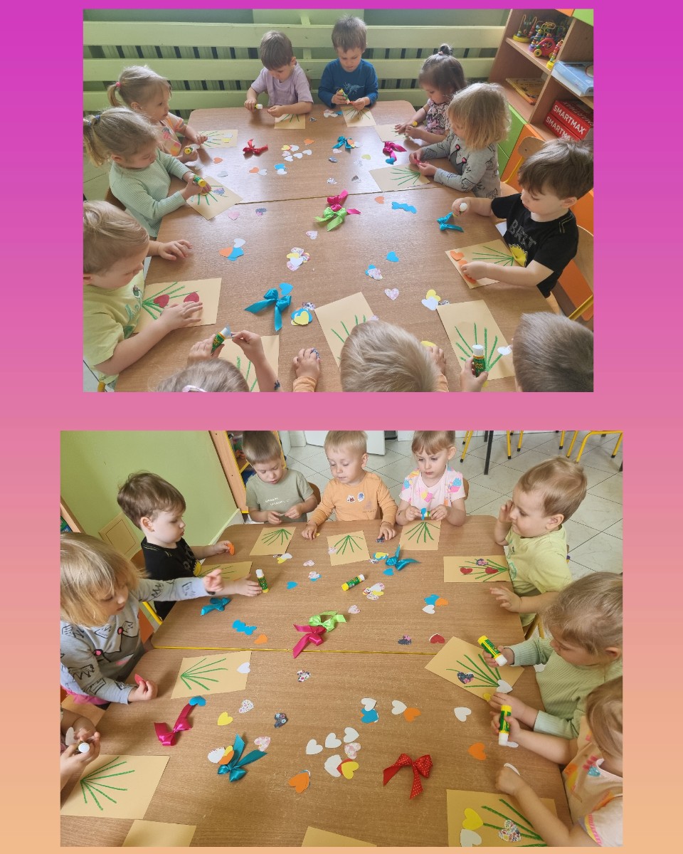 Zdjęcia przedstawiają dzieci świętujące Dzień Mamy.