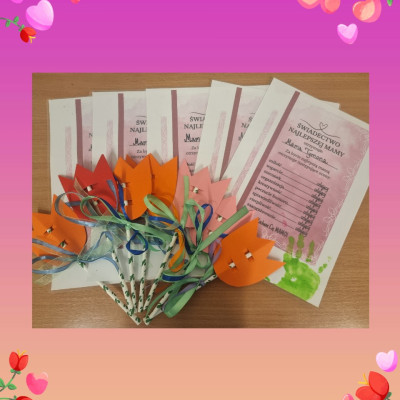 Z okazji wspaniałego święta jakim jest Dzień Mamy, Żabki przygotowały dla swoich kochanych Mam kwiatuszka i świadectwo najlepszej Mamy odbijając swoją rączke.