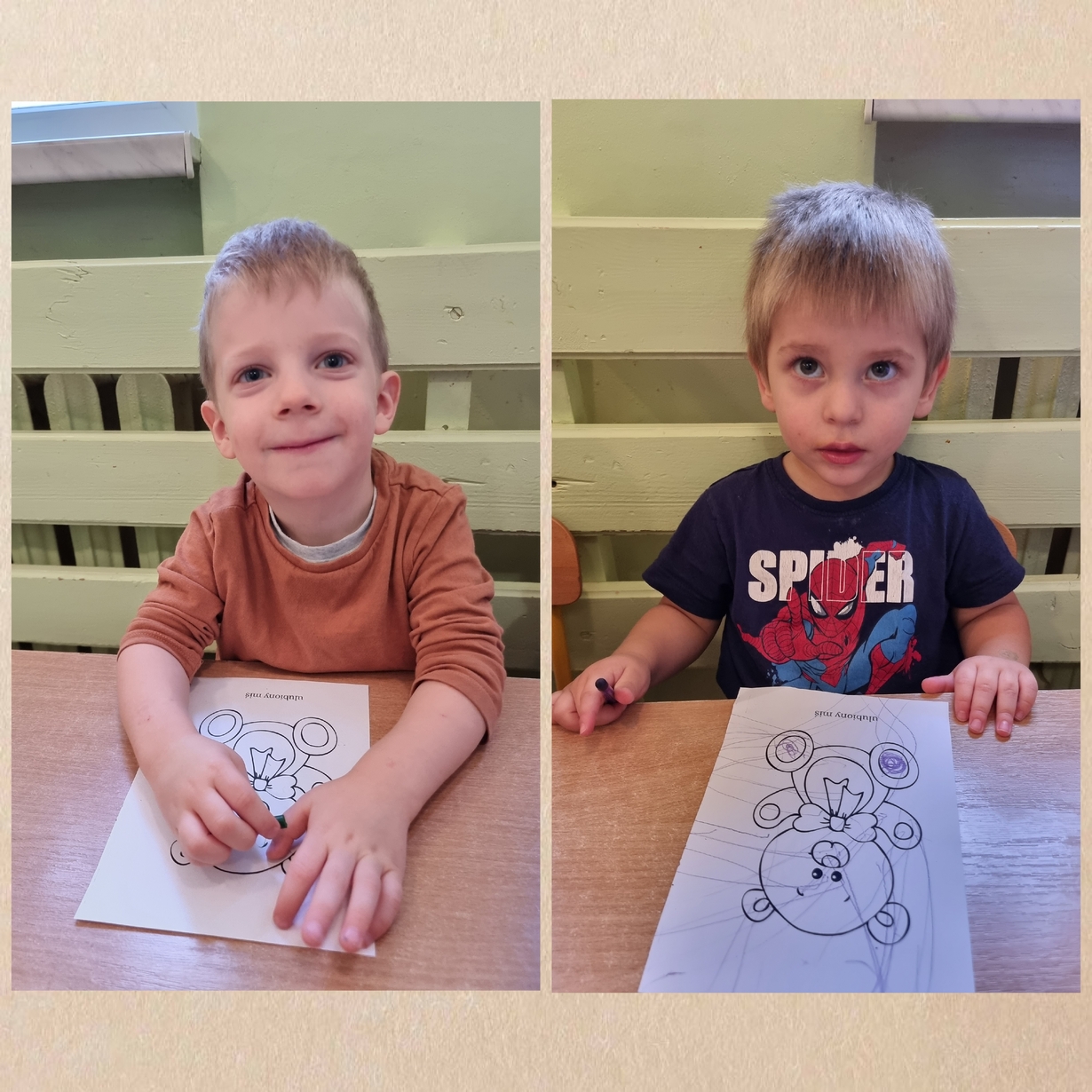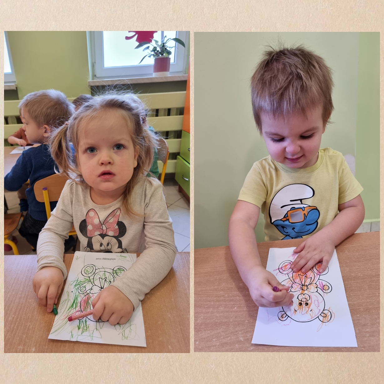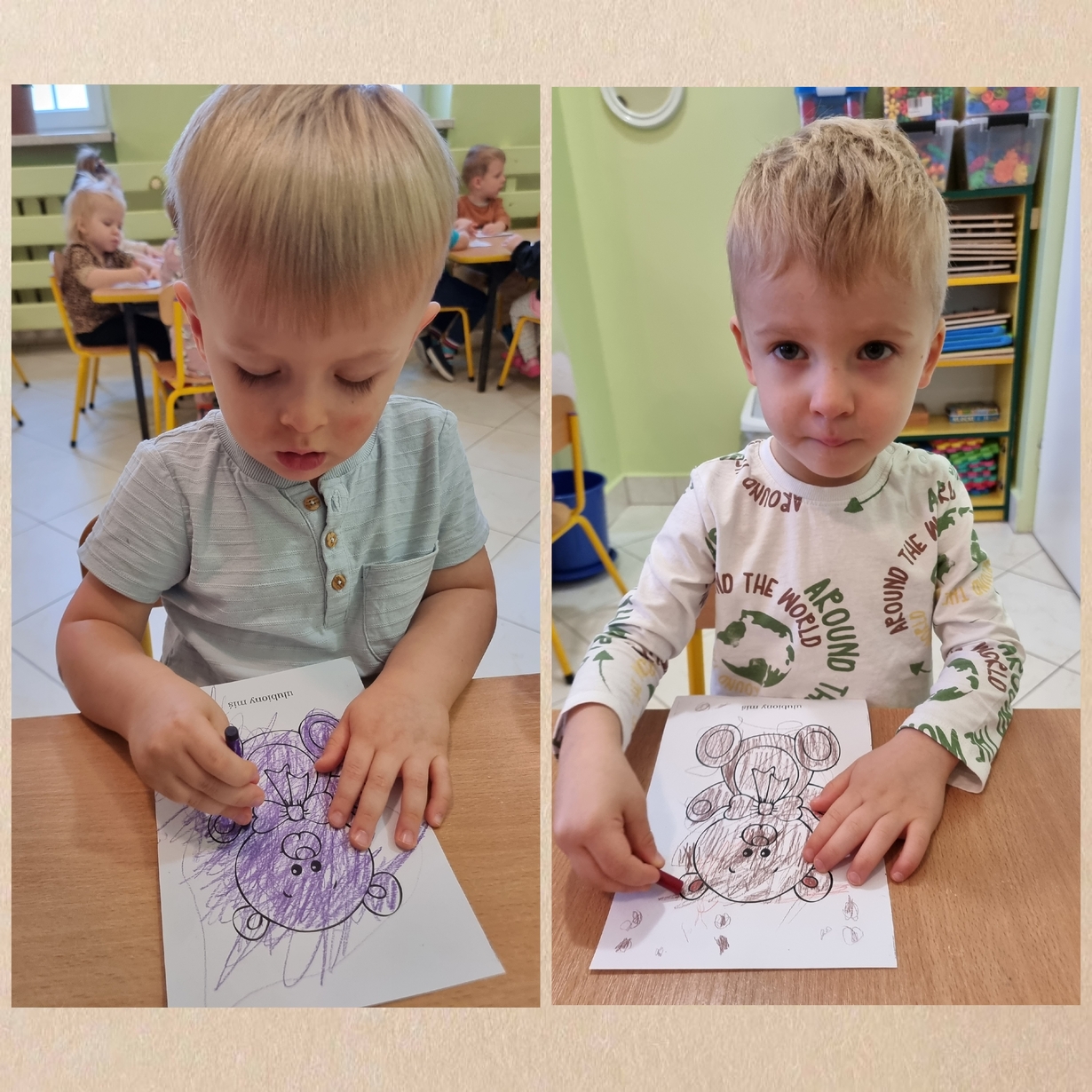 Ćwiczyliśmy także zdolności manualne przy kolorowaniu misia.