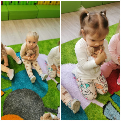 Zdjęcie przedstawia dzieci podczas zajęć w żłobku z okazji dnia misia