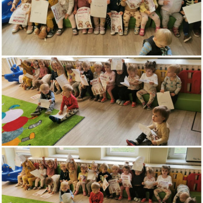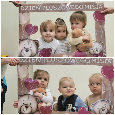 CZdjęcie przedstawia dzieci podczas zajęć w żłobku z okazji dnia misia