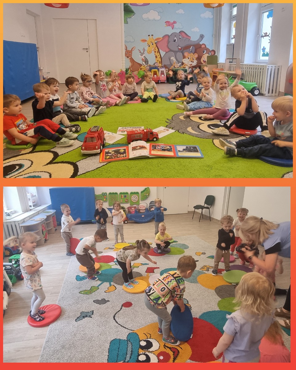 Podczas naszych zabaw dzieci poznały zagadnienia trudnej i niebezpiecznej pracy strażaków oraz sprzętu, który służy im podczas wykonywania codziennej pracy.