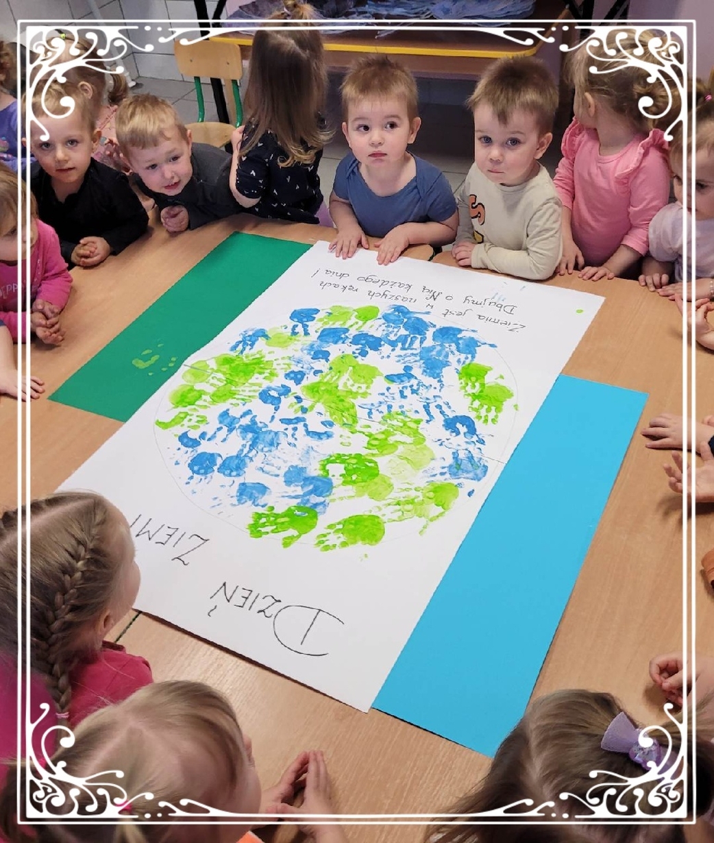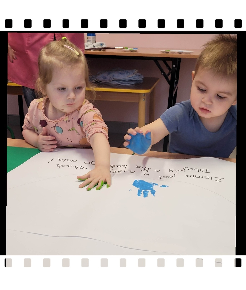 22 kwietnia obchodzony jest Dzień Ziemi i nasze małe Biedroneczki również zechciały uczcić to święto. Z tej okazji wykonaliśmy wspólnie plakat przedstawiający naszą Planetę, głoszący, że jej los leży w naszych rękach. To od nas zależy czy Nasza Planeta będzie czysta i zadbana, czy zanieczyszczona. Dzieci odbijały na plakacie kolorowymi farbami swoje rączki co symbolizowało fakt, że Ziemia jest w naszych rękach. Dbajmy o dobro Ziemi a co za tym idzie nasze wspólne.