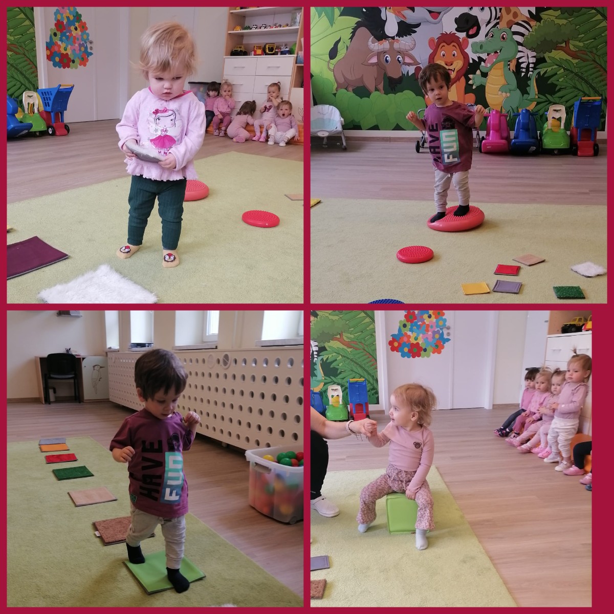Każdy dobrze o tym wie, że aby zdrowym być potrzeba nam dużo ruchu i ćwiczeń 😀Pszczółki dzielnie wykonywały zadania, które na nie czekały miały okazję się nie tylko poruszać, ale po dotykać różne rodzaje materiałów. Było dużo wrażeń, a zarazem dużo uśmiechu.