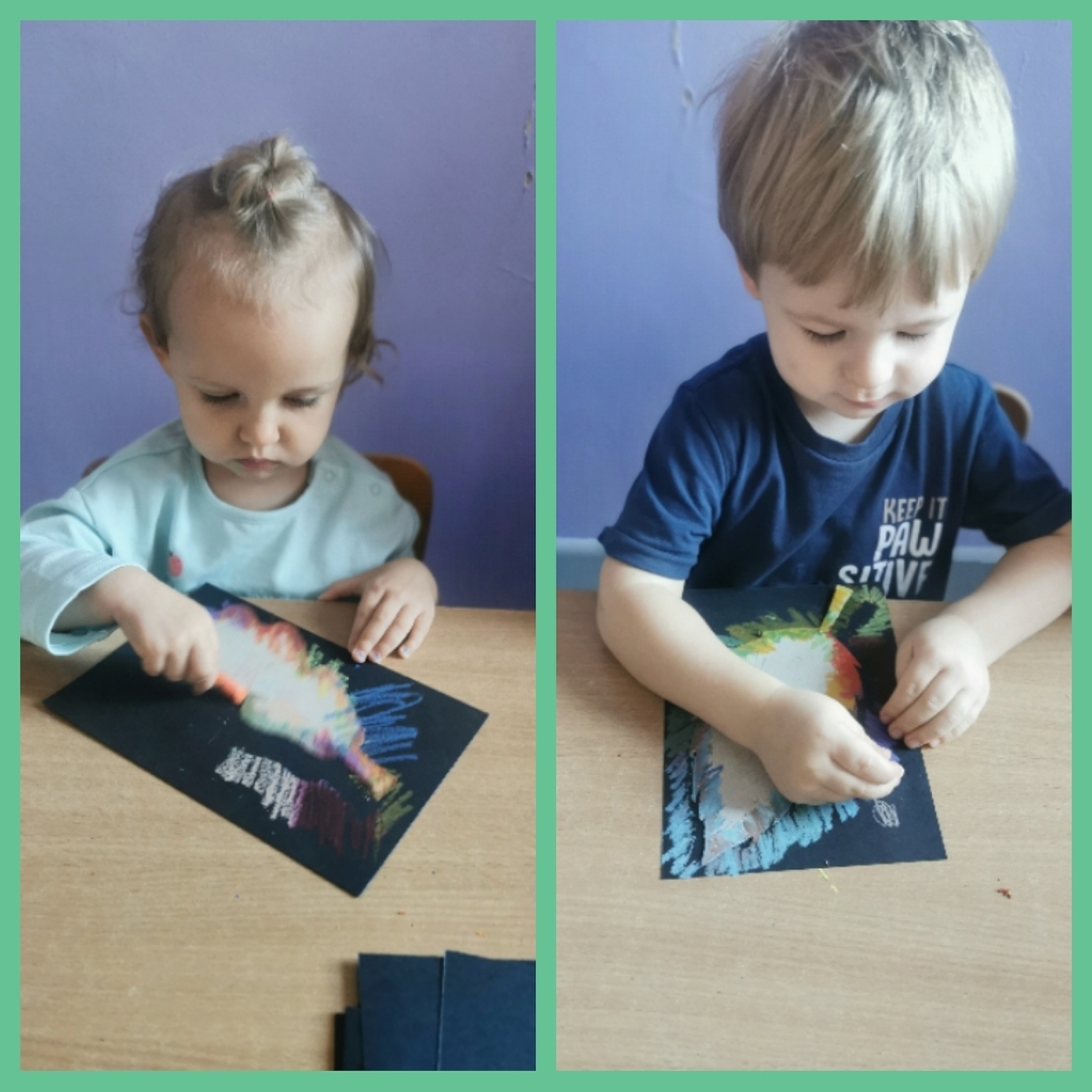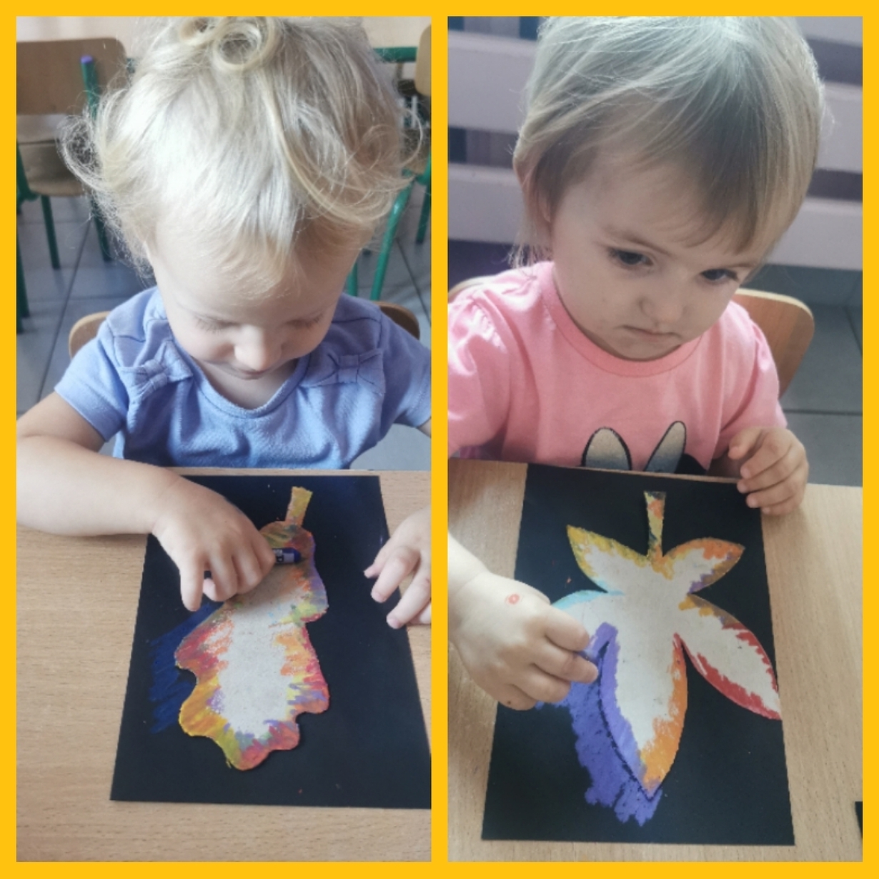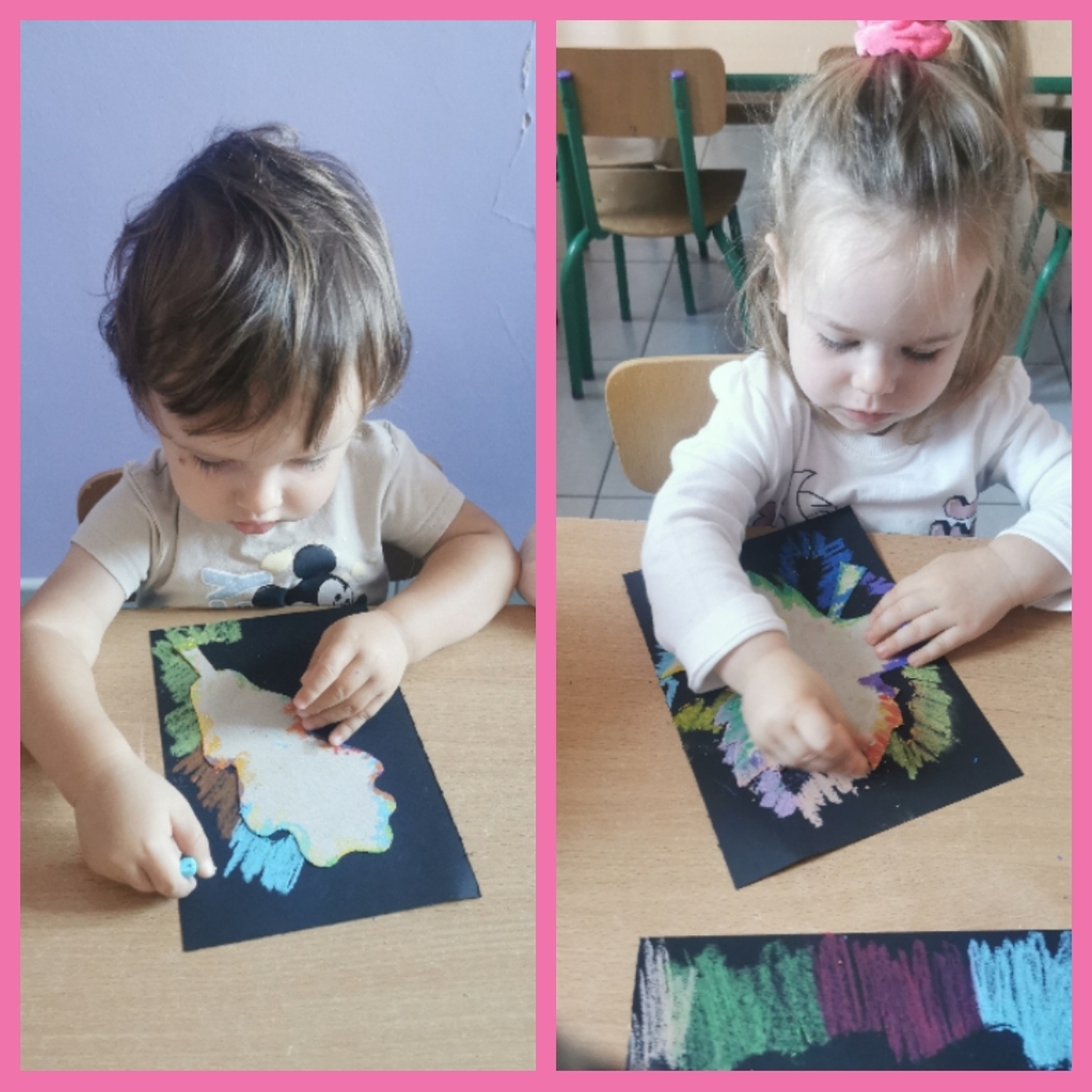 Jesień zawitała w nasze skromne progi, a my witając ją mile wykonaliśmy piękne prace plastyczne z motywem jesiennym. Na czarnych kartkach z wykorzystaniem kolorowych pasteli odbijaliśmy szablony jesiennych liści, które mienią się pięknymi barwami jakimi obdarowuje nas Jesień. Klimat tej magicznej pory roku zawitał na dobre w naszym żłobku i może wpłynąć na każdego, kto spojrzy na nasze dzieła. Zapraszamy do galerii zdjęć.