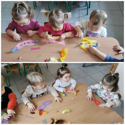 W naszej grupie czuć magię karnawału. Z tej okazji przygotowaliśmy prace przepełnione błyskotkami i blaskiem kryształków, cekinów i brokatu. Ależ pięknie nasze karnawałowe maski mienią się w świetle, ale przecież jak karnawał to karnawał! Zapraszamy serdecznie do podziwiania naszych pięknych masek w galerii zdjęć.