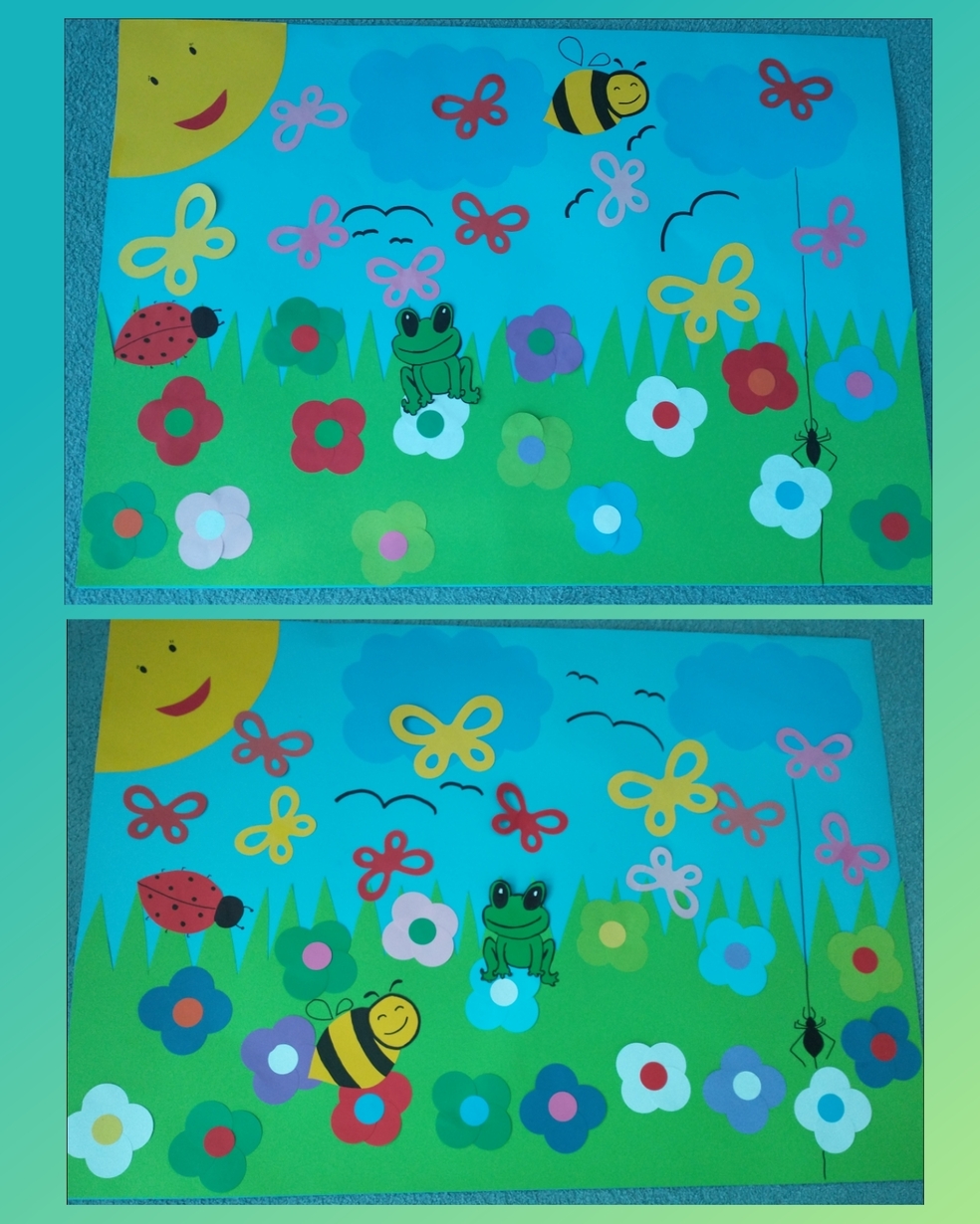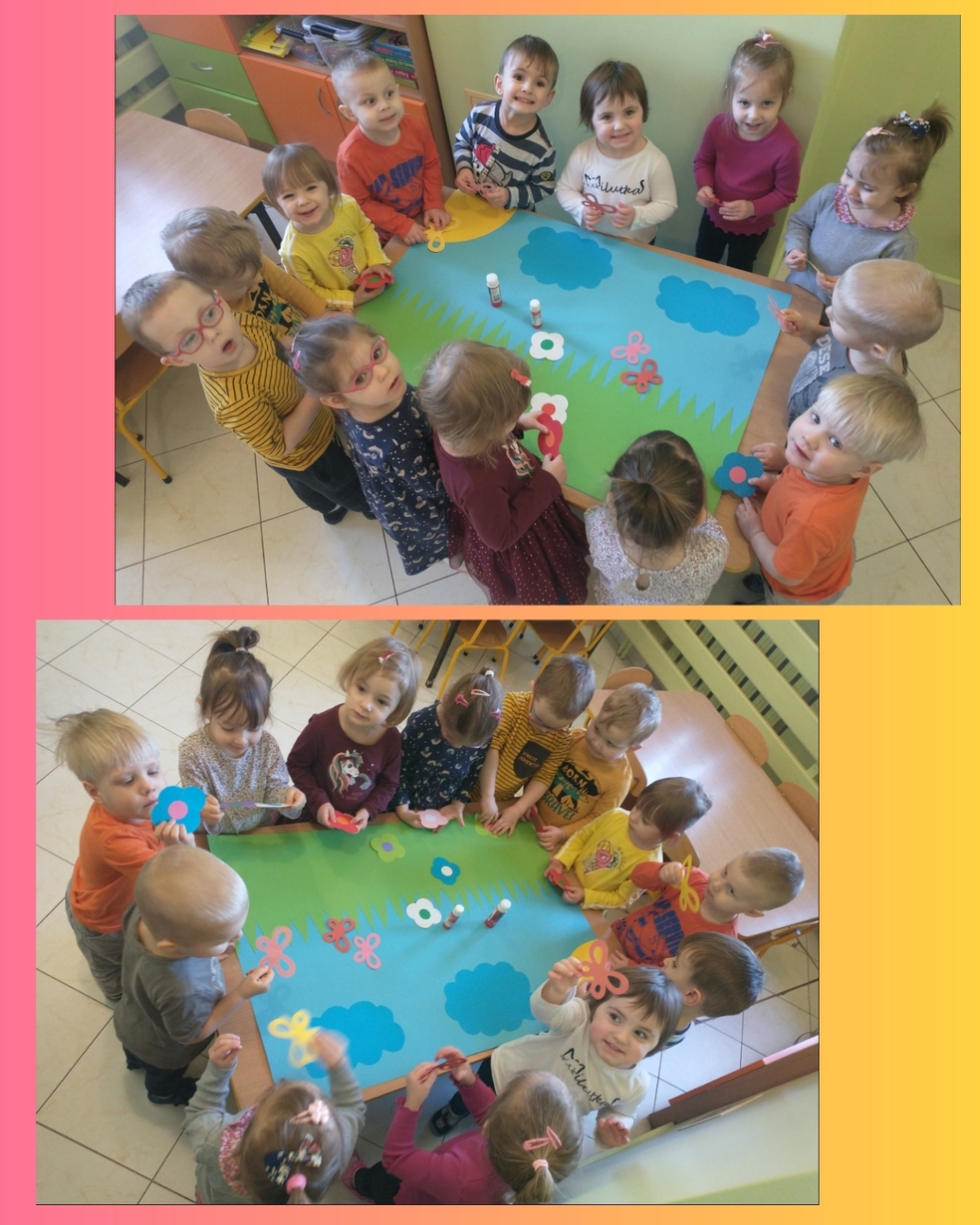 Każde z dzieci dodało kolorowego kwiatuszka lub barwnego motylka.