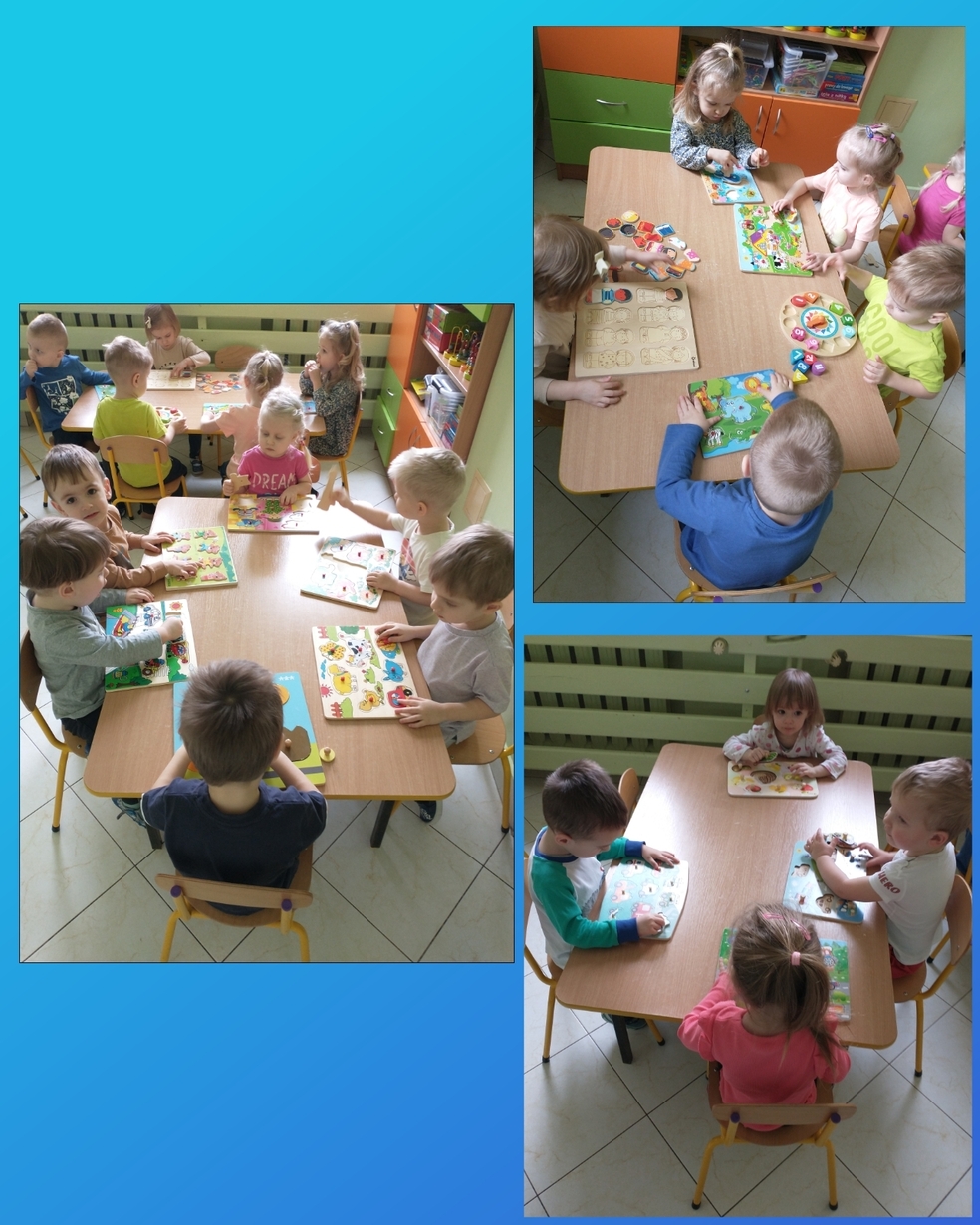 Nasi podopieczni ćwiczyli również koordynację ręka-oko, dopasowując otrzymane elementy układanek do pustych miejsc które po nich zostały.