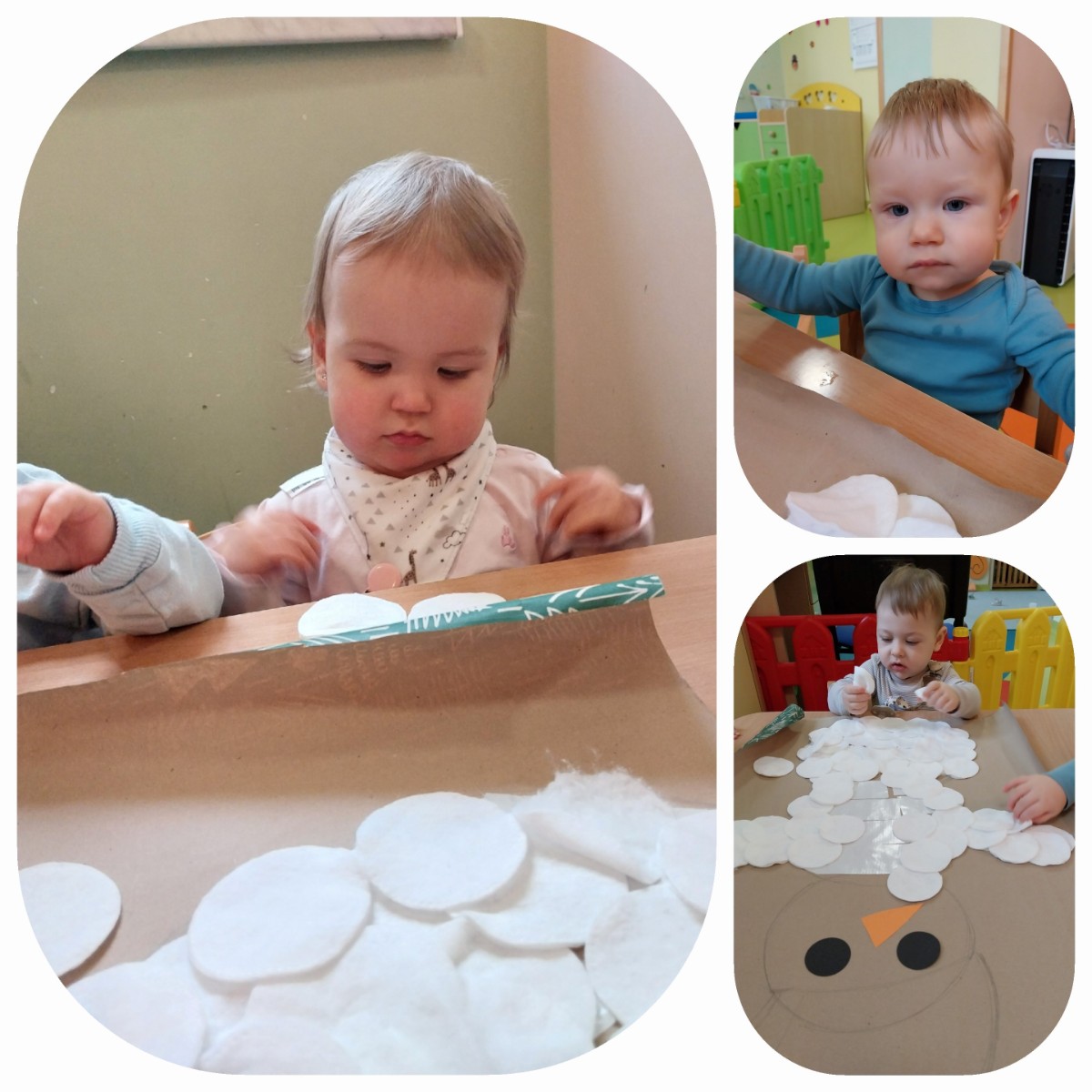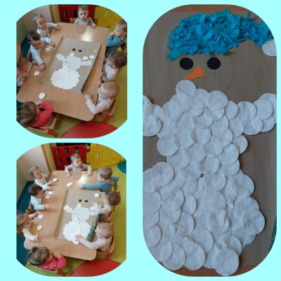 W dniu dzisiejszym w grupie "Motylki" odbył się "Dzień Bałwana ".W tym dniu maluchy wraz z pomocą opiekunek wykonały grupową pracę plastyczną wspólnie wyklejały bałwana wacikami.Na zakończenie dnia odbyło się wspólne śpiewanie piosenek o bałwanku . "Stoi bałwan koło płotka "... ,Ulepiła Hanka małego Bałwana.