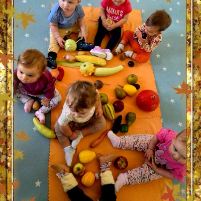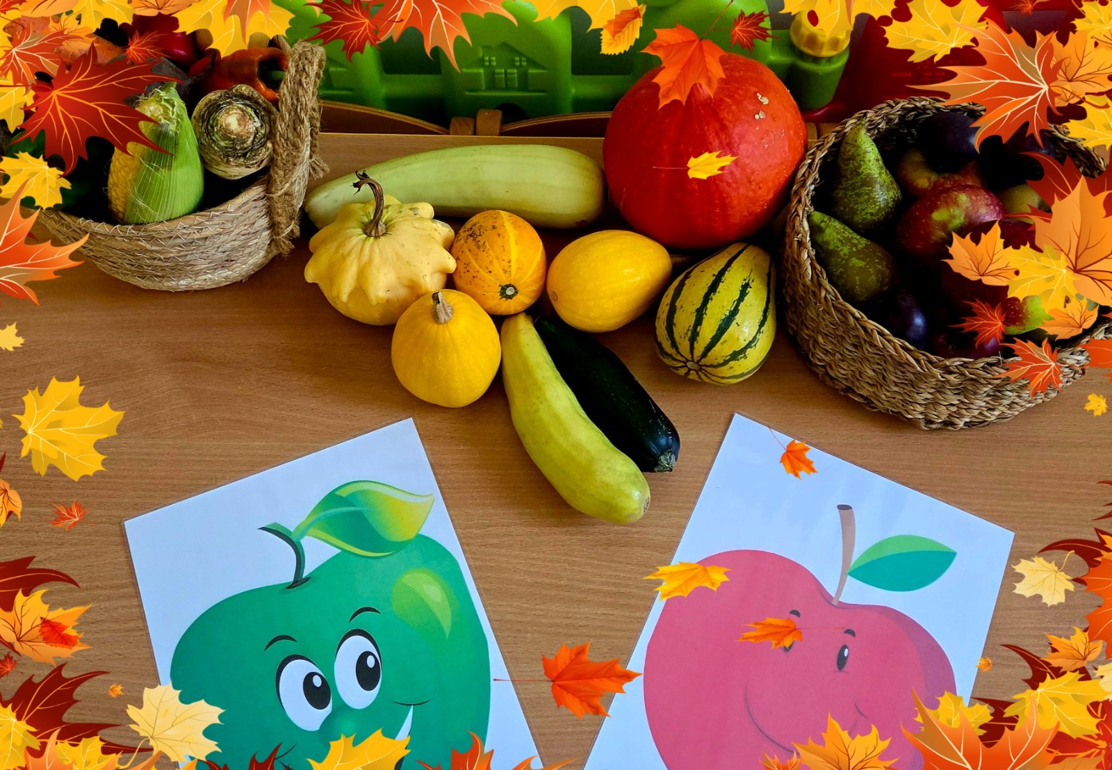 Maluszki brały udział w zajęciach, na których poznawały dary jesieni. Z ogromnym zainteresowaniem oglądały jesienne  warzywa i owoce rosnące w naszych ogródkach.