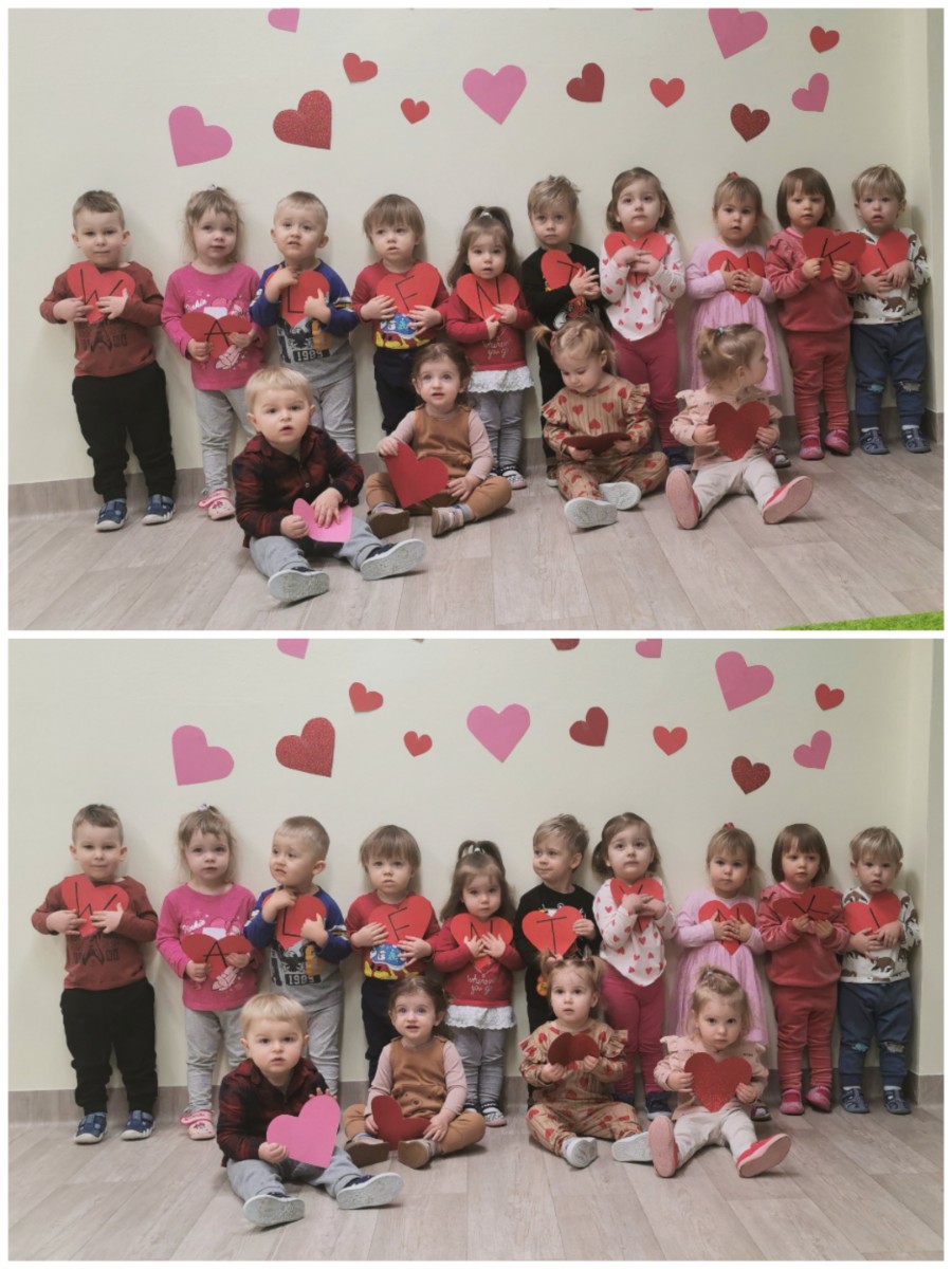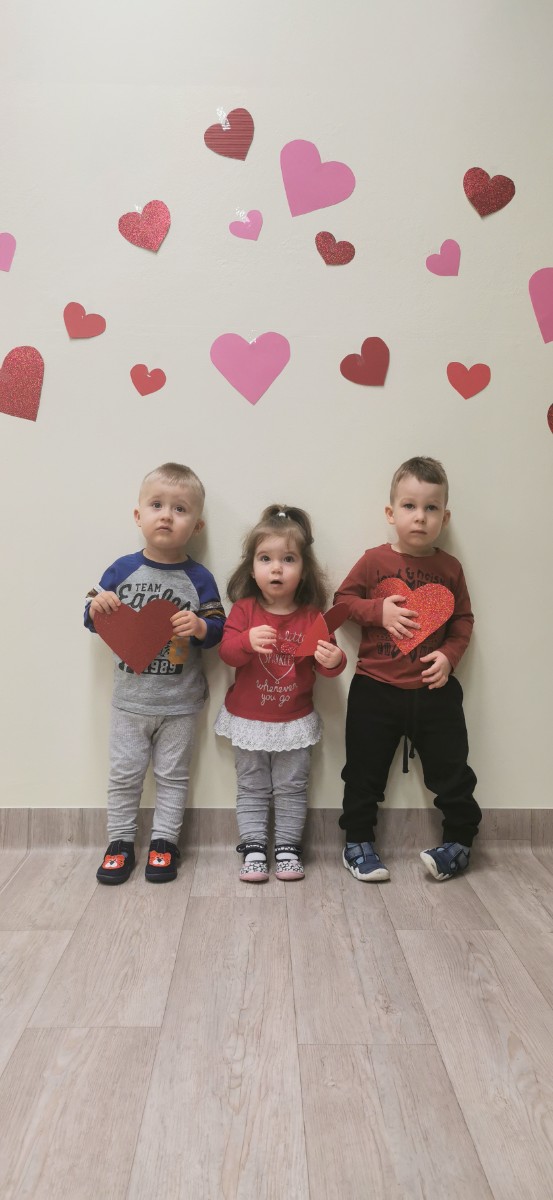 Zdjęcie przedstawia dzieci podczas sesji walentynkowej.