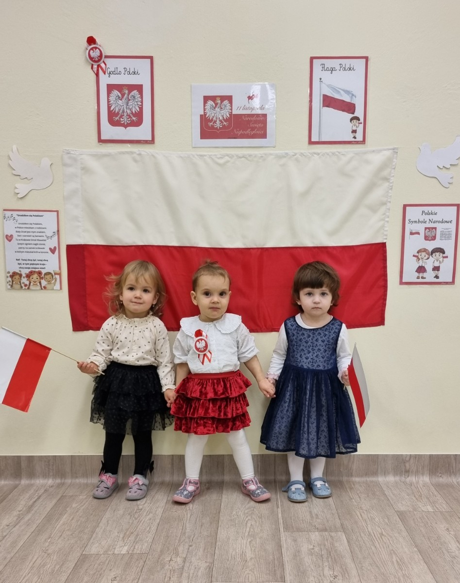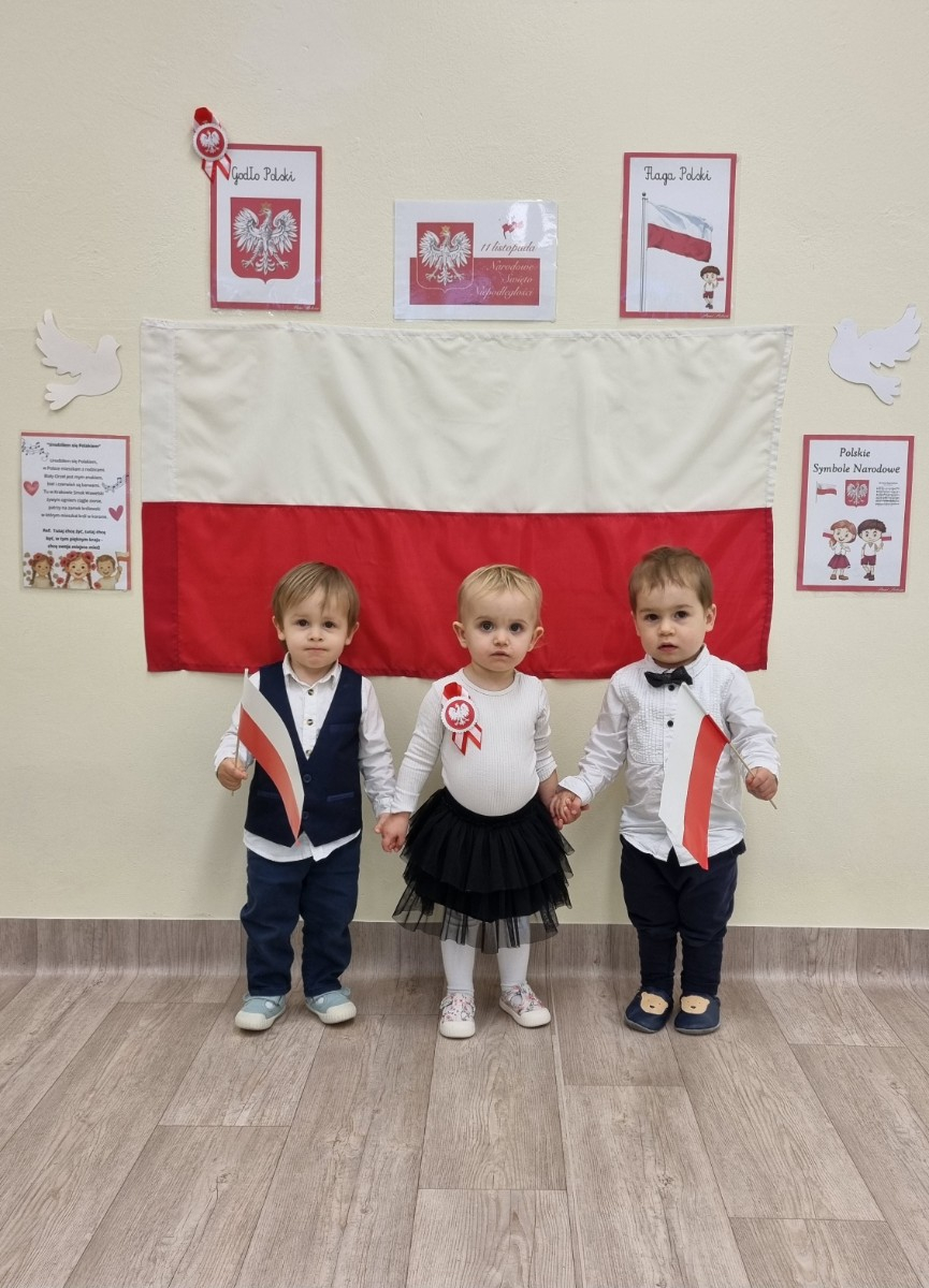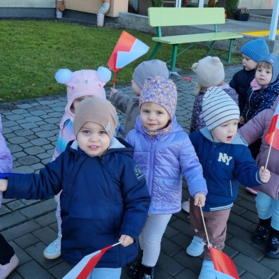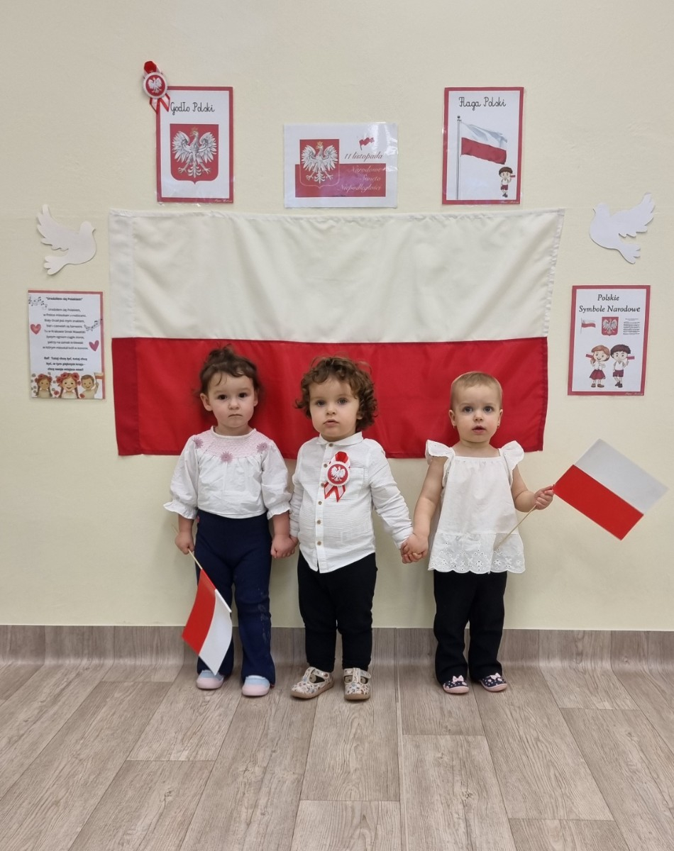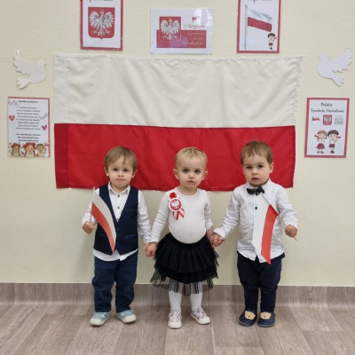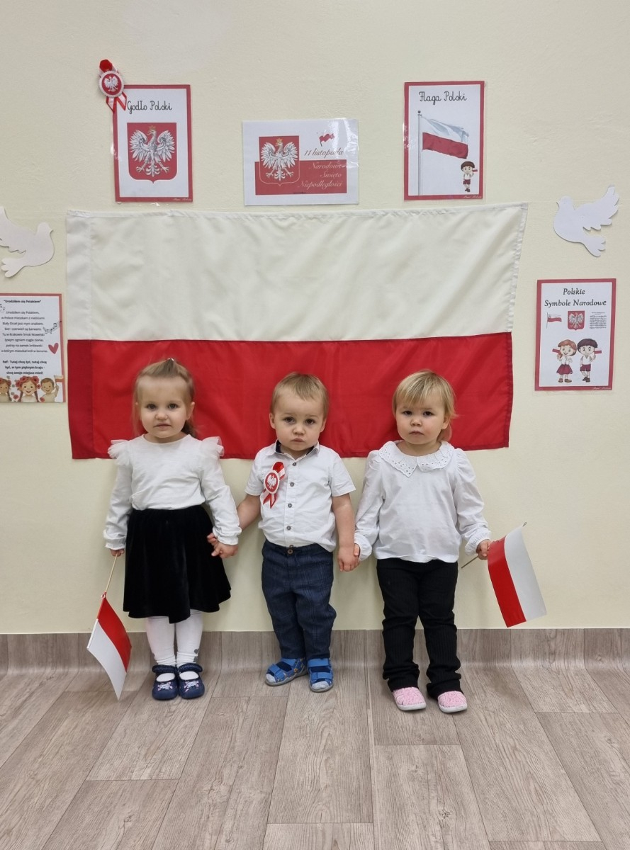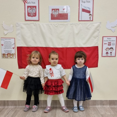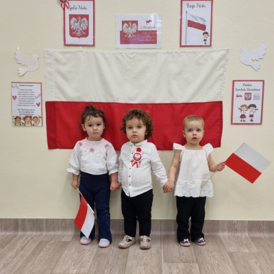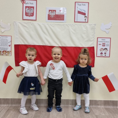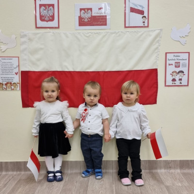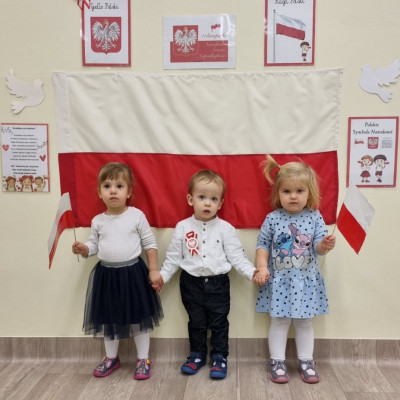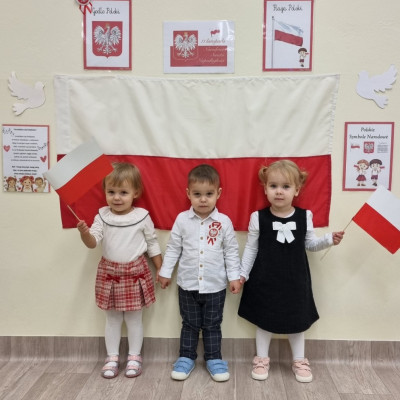 Już od najmłodszych lat należy wpajać dzieciom szacunek do polskich symboli i przywiązania do swojej Ojczyzny. W dniu dzisiejszym, na grupie "Biedronek" odbyła się uroczystość z okazji Narodowego Święta Niepodległości. Miała ona na celu kształtowanie postawy szacunku wobec symboli narodowych: godła, flagi i hymnu oraz pielęgnowanie polskiej kultury i tradycji.