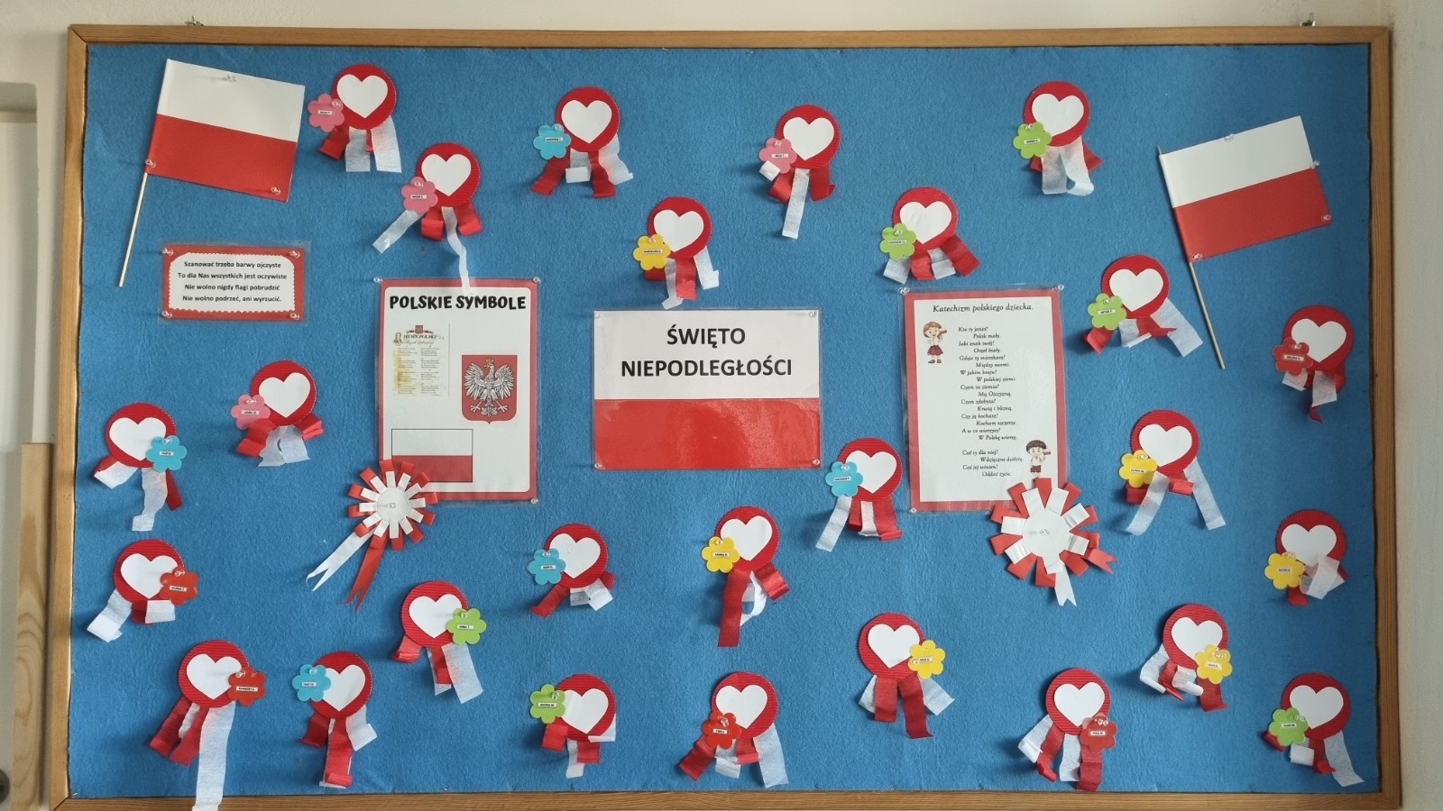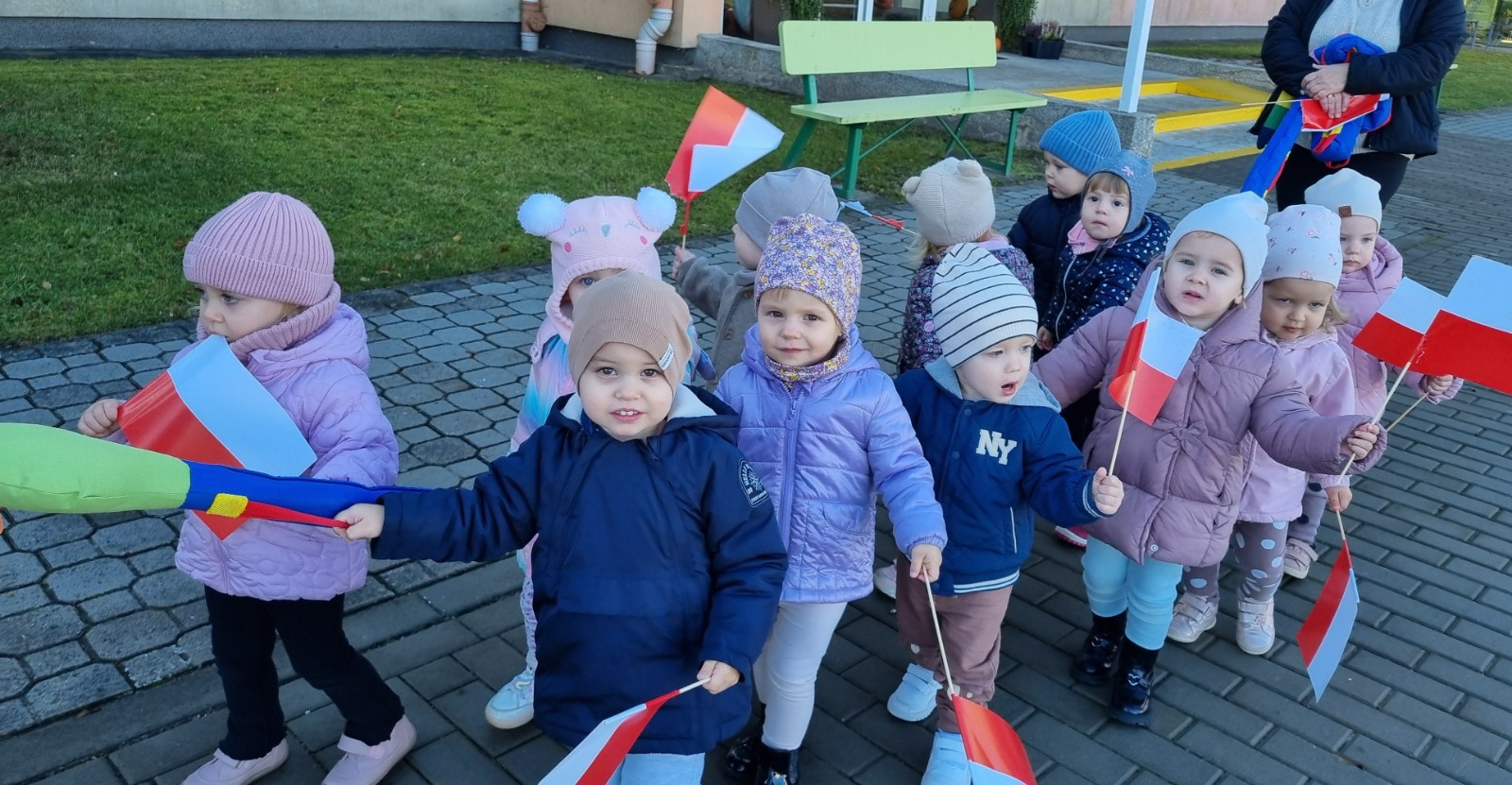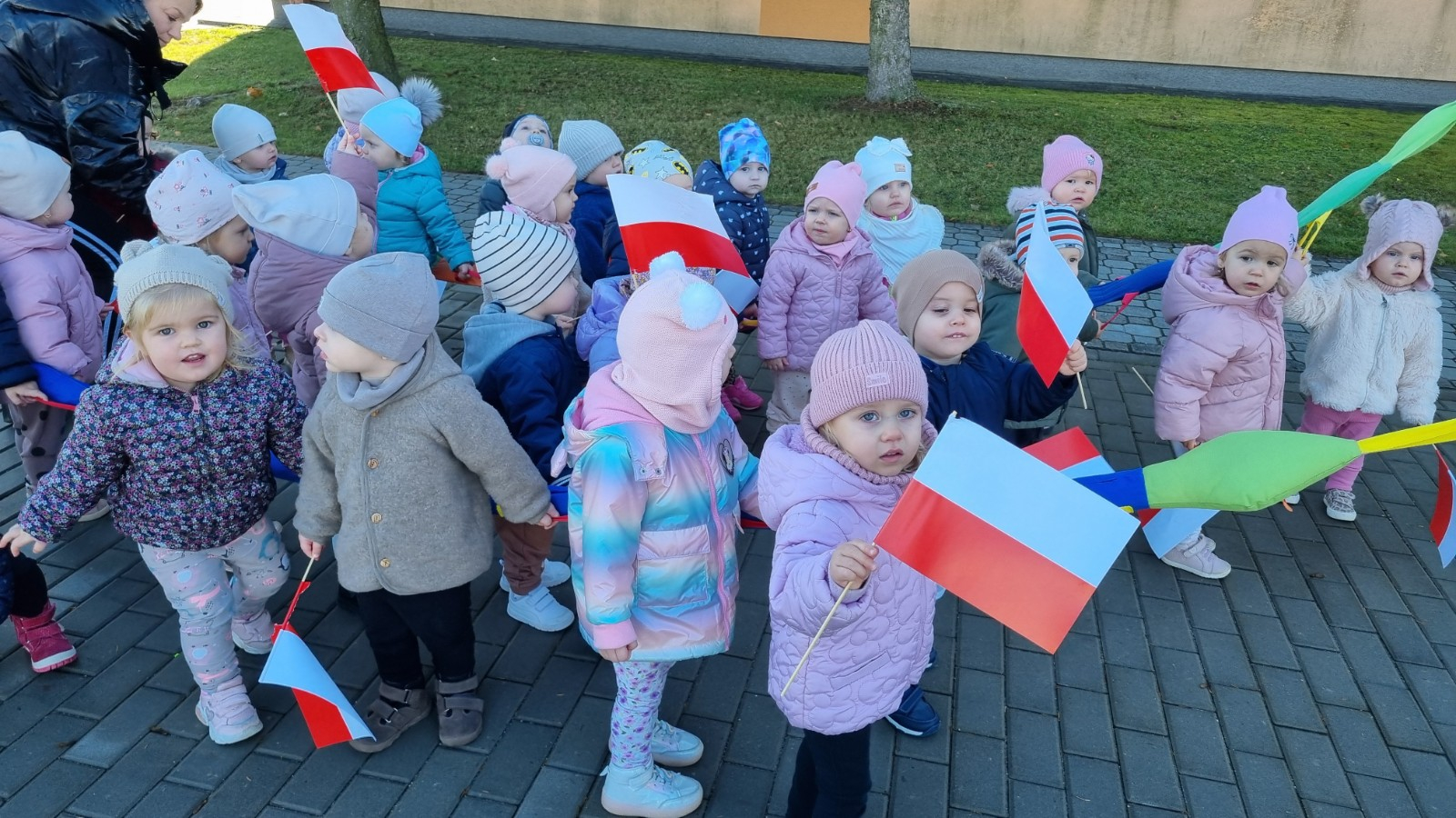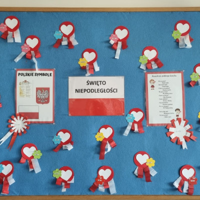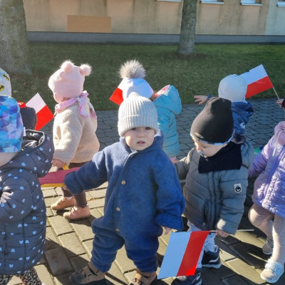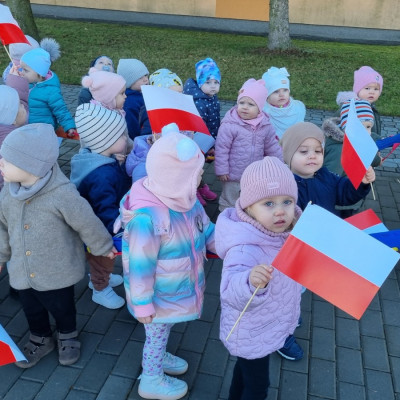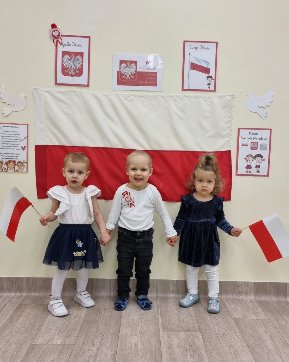 Już od najmłodszych lat należy wpajać dzieciom szacunek do polskich symboli i przywiązania do swojej Ojczyzny. W dniu dzisiejszym, na grupie "Biedronek" odbyła się uroczystość z okazji Narodowego Święta Niepodległości. Miała ona na celu kształtowanie postawy szacunku wobec symboli narodowych: godła, flagi i hymnu oraz pielęgnowanie polskiej kultury i tradycji.