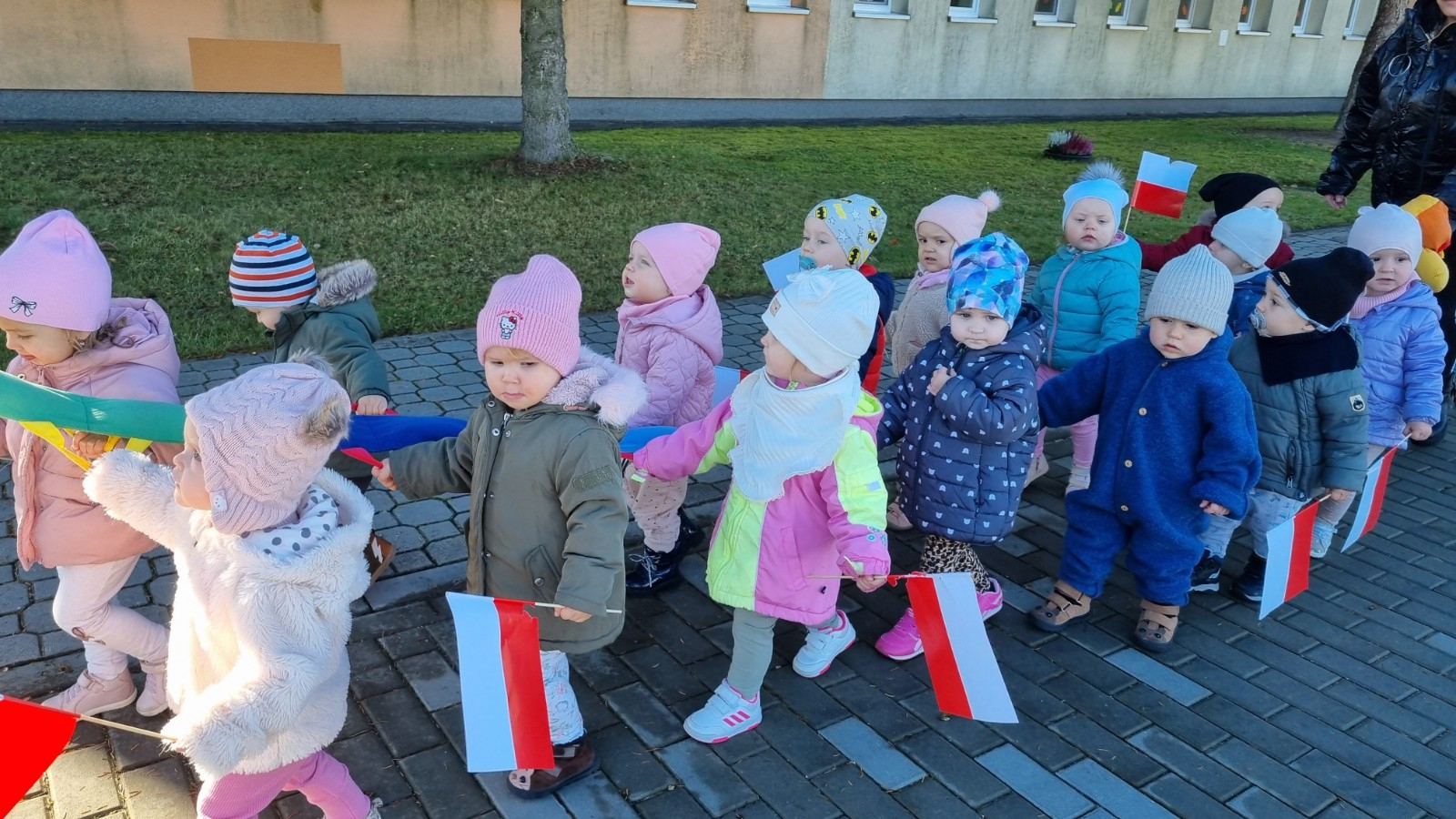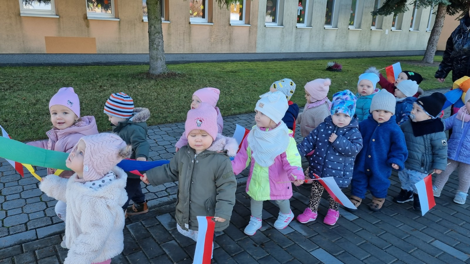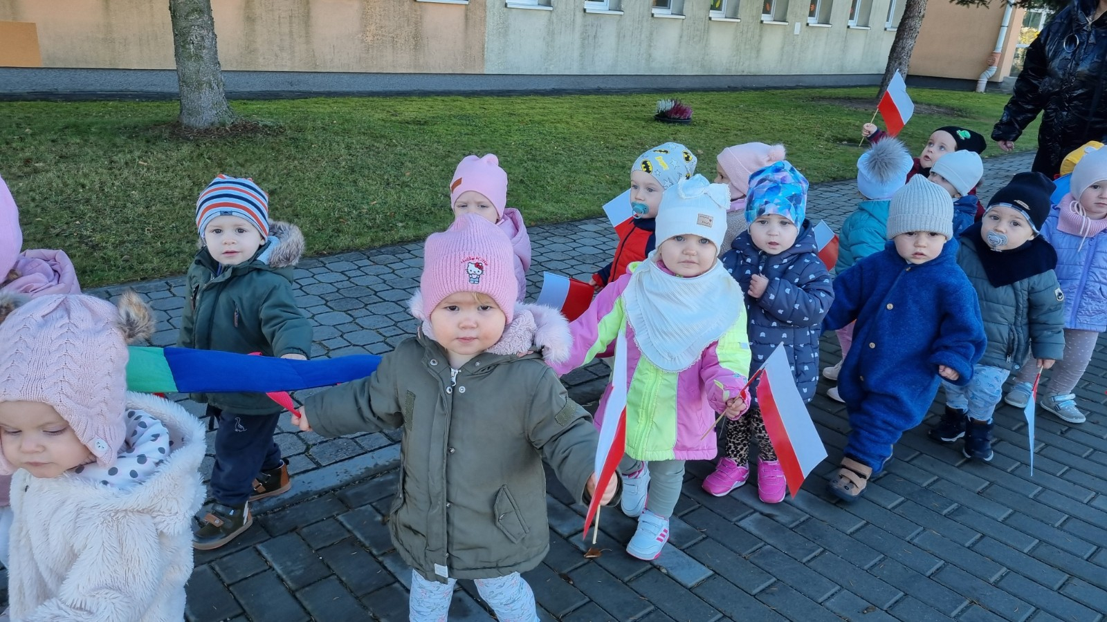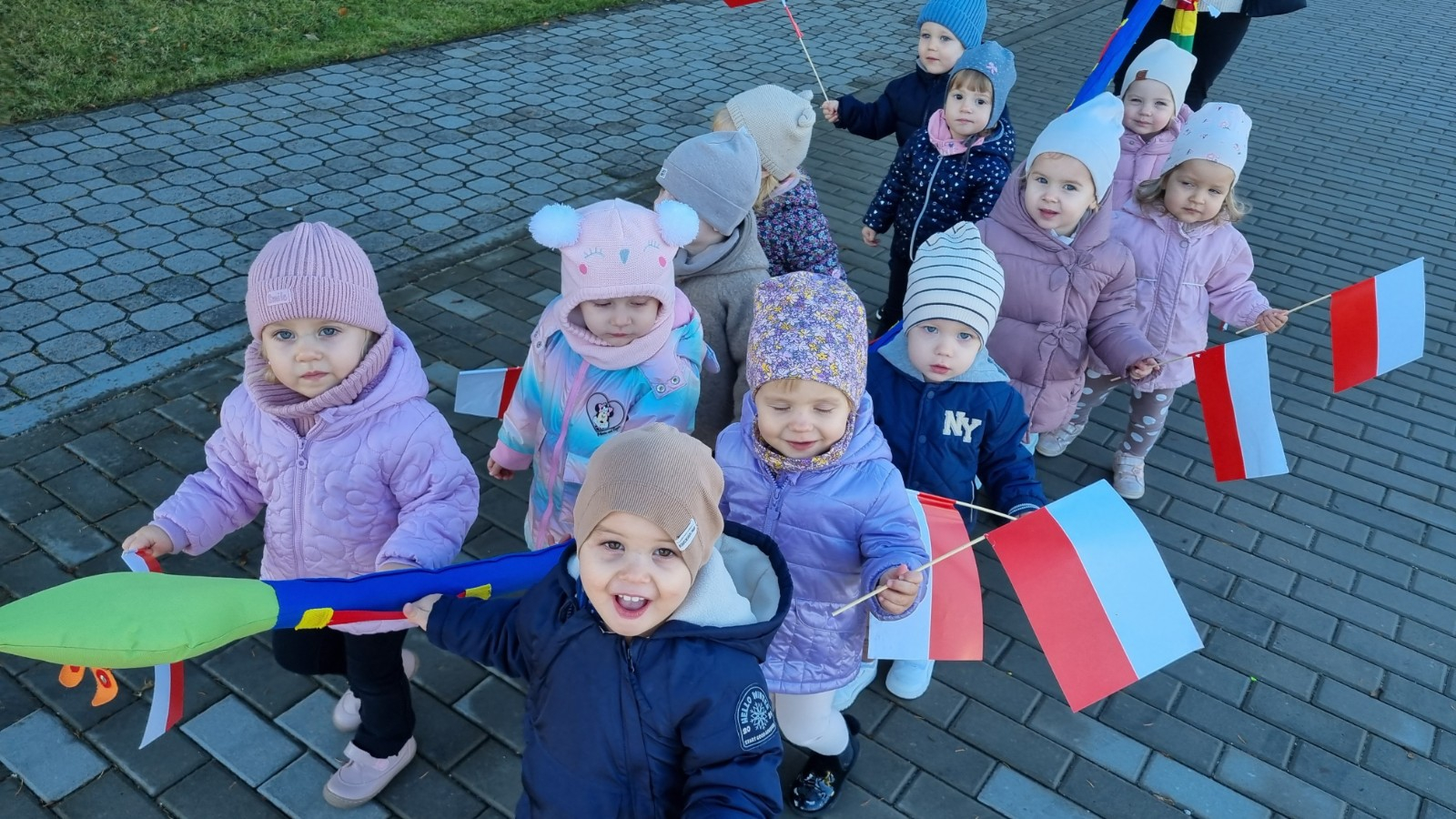 Zdjecia przedstawiają dzieci obchodzące Święto Niepodległości.