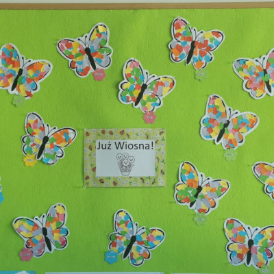 W naszym żłobeczku zawitał wyjątkowy gość - Pani Wiosna. Od razu zrobiło się pogodnie i radośnie. Pani Wiosna dla każdego milusińskiego miała słodki upominek. W ten wyjątkowy Pierwszy Dzień Wiosny ciocie przygotowały zajęcia, w których zadaniem dzieci było odnaleźć pierwsze oznaki wiosny. Poszło nam rewelacyjnie. Ciepłe słoneczko wprowadza nas w wesoły nastrój a nasze małe Biedroneczki postanowiły rozwijać swój talent artystyczny. Wykonaliśmy wiosenne prace, których tematem były motyle. Dzieci metodą wydzieranki wykleiły motylki, nadając im radosny i pełen wdzięku wygląd. Wiosenna aura zawitała na żłobkowym korytarzu. W tym dniu również z okazji DNIA WODY dzieci łowiły kaczuszki z wody oraz przyglądały się pływającym zabawkom: delfinowi, żółwiowi i kaczuszce. Zapraszamy do galerii zdjęć.