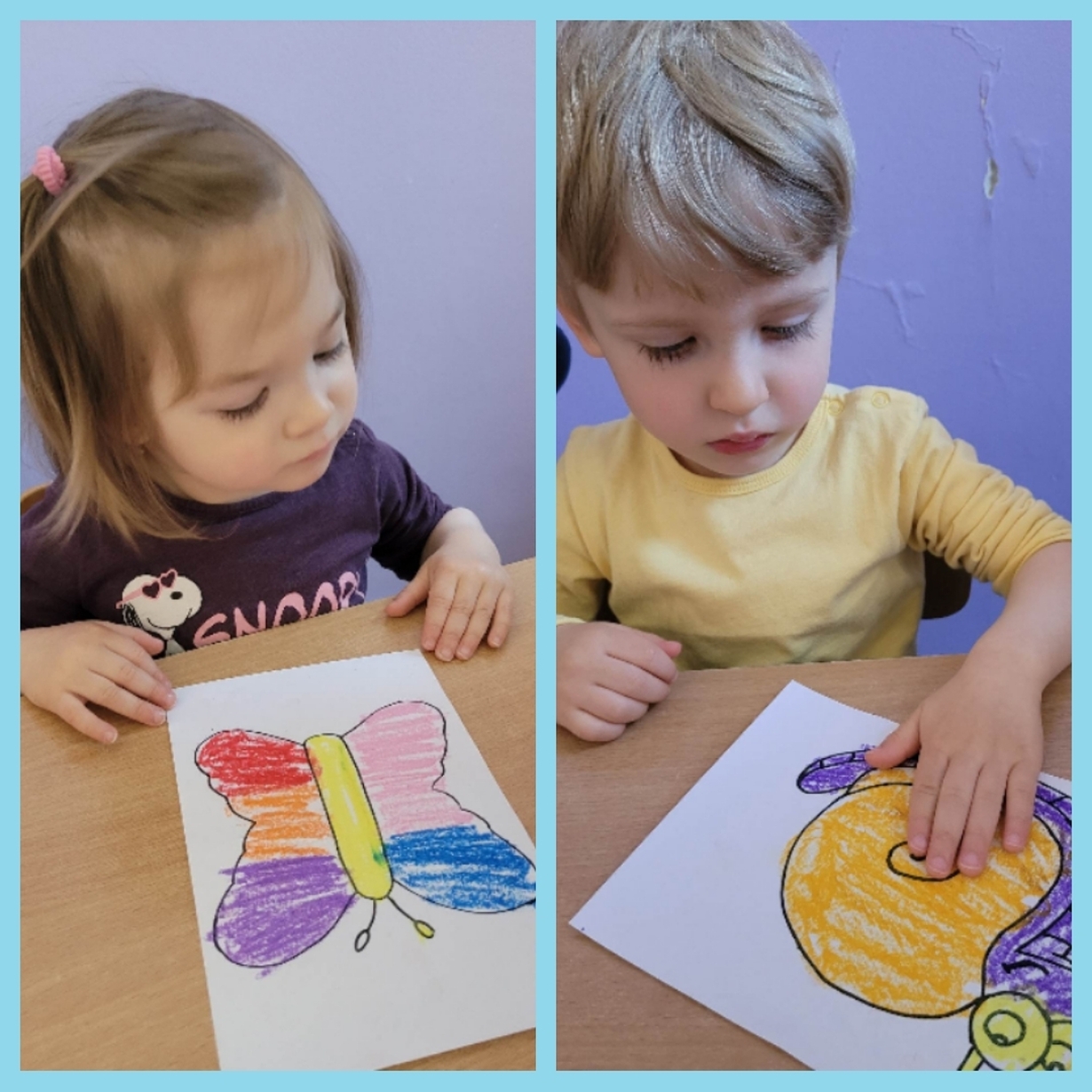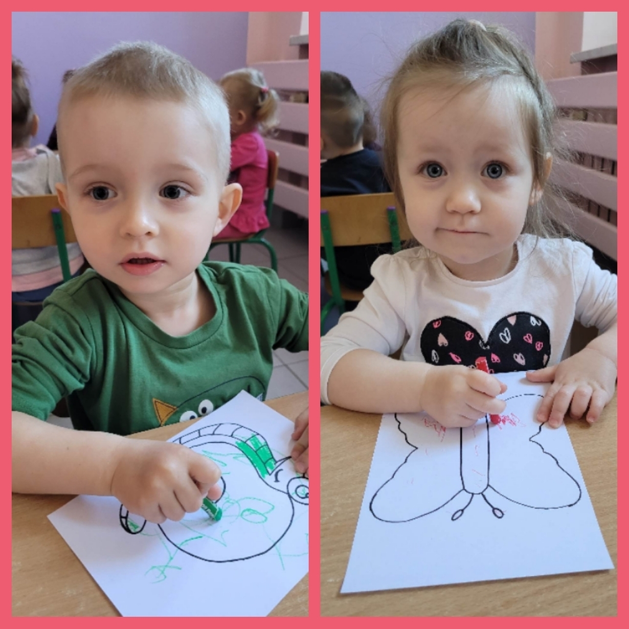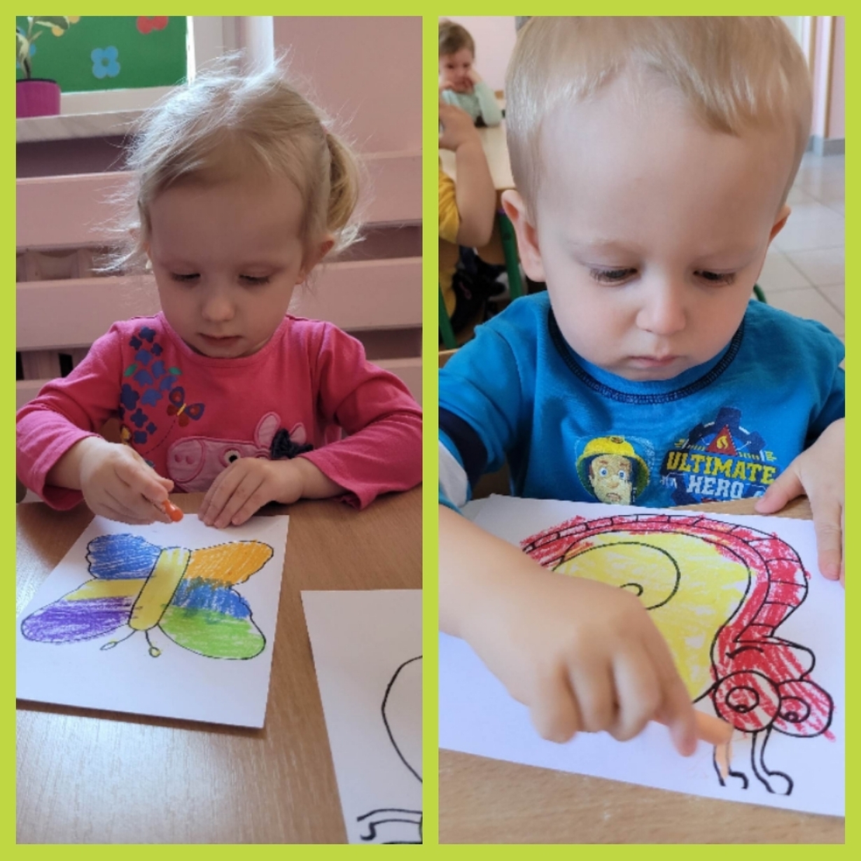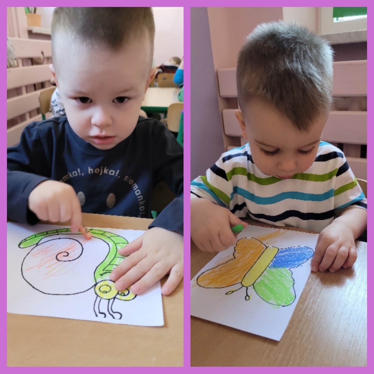 Nadeszły upragnione cieplejsze dni, gdzie przyroda budzi się do życia. Wkoło wszystko pięknie kwitnie, latają kolorowe motylki, na spacerze można spotkać różne ptaszki, żabki, ślimaczki i inne zwierzątka. Nasi mali artyści dzisiaj za pomocą pasteli przygotowali prace, które przedstawiają ślimaka i motylka. Od razu jakoś weselej wkoło. Można je zobaczyć na żłobkowym korytarzu oraz w galerii zdjęć.