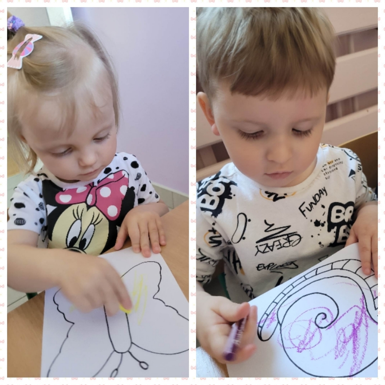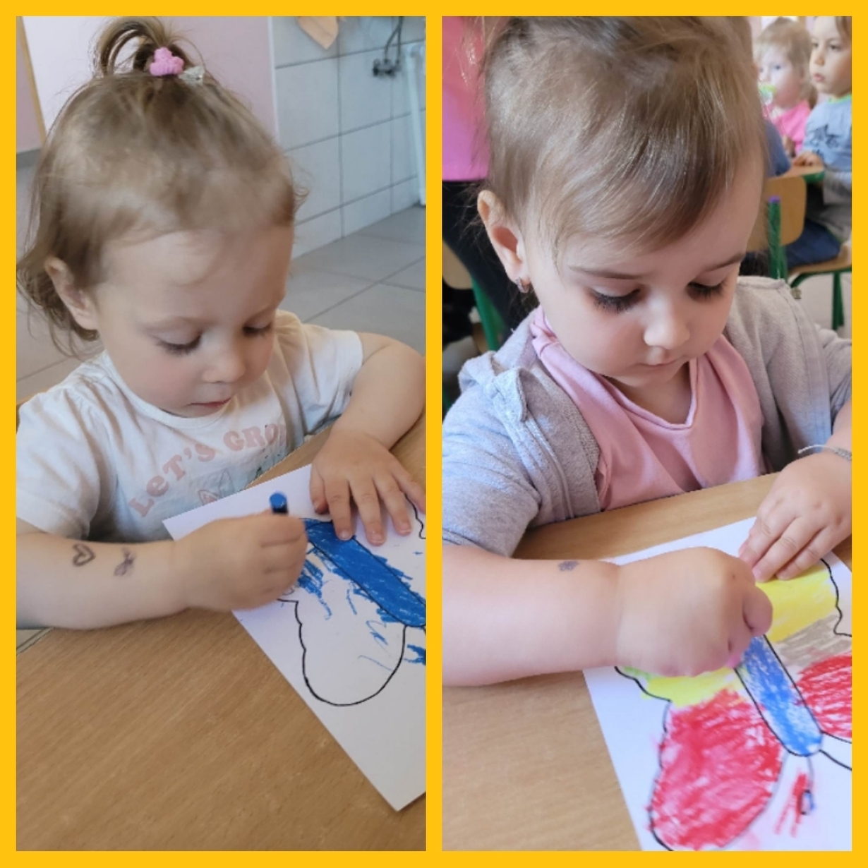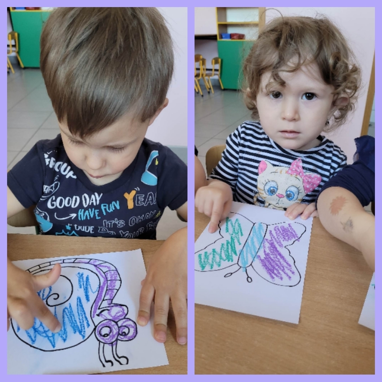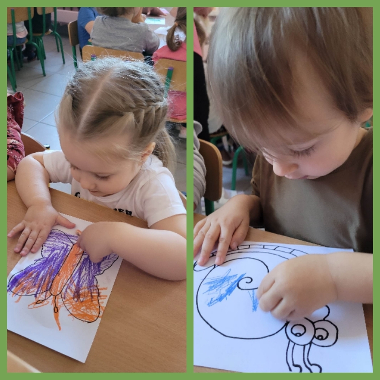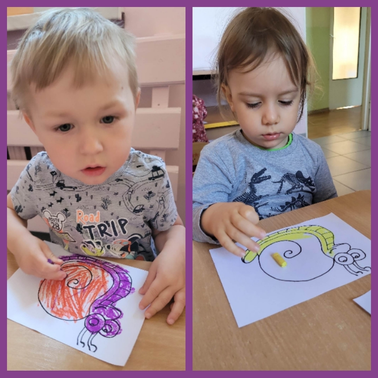 Nadeszły upragnione cieplejsze dni, gdzie przyroda budzi się do życia. Wkoło wszystko pięknie kwitnie, latają kolorowe motylki, na spacerze można spotkać różne ptaszki, żabki, ślimaczki i inne zwierzątka. Nasi mali artyści dzisiaj za pomocą pasteli przygotowali prace, które przedstawiają ślimaka i motylka. Od razu jakoś weselej wkoło. Można je zobaczyć na żłobkowym korytarzu oraz w galerii zdjęć.