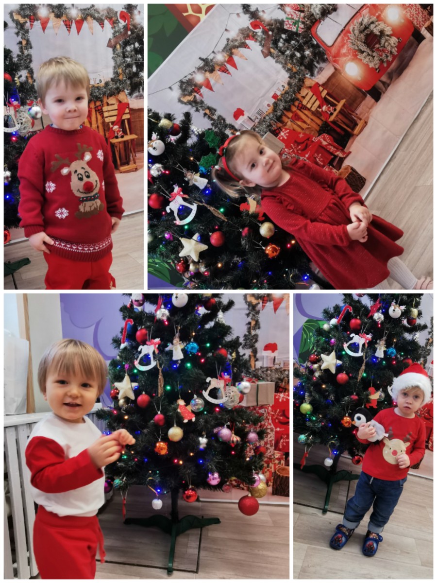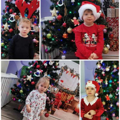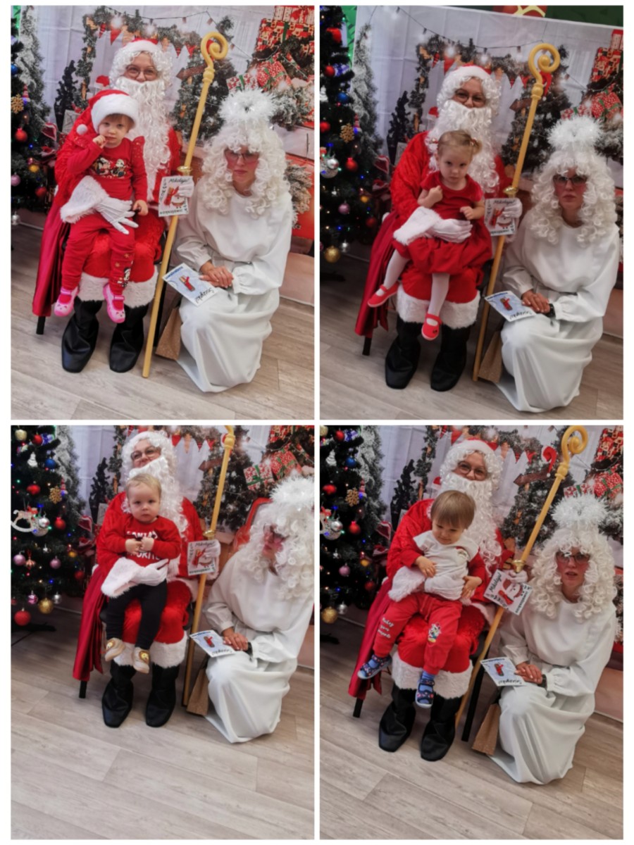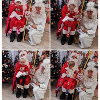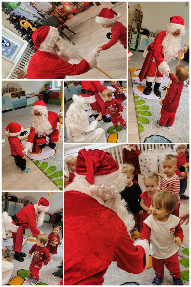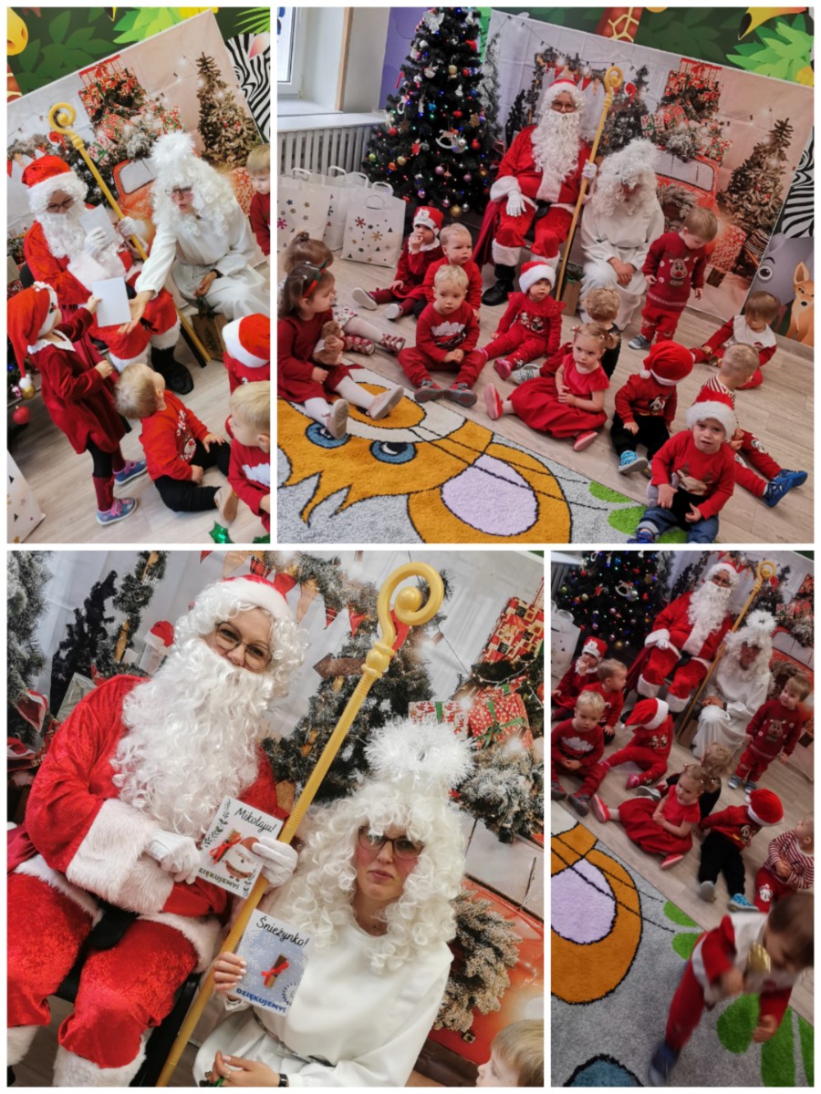 Zdjęcia przedstawiają dzieci podczas wizyty Mikołaja.