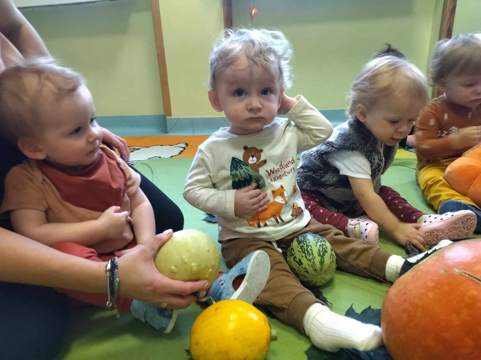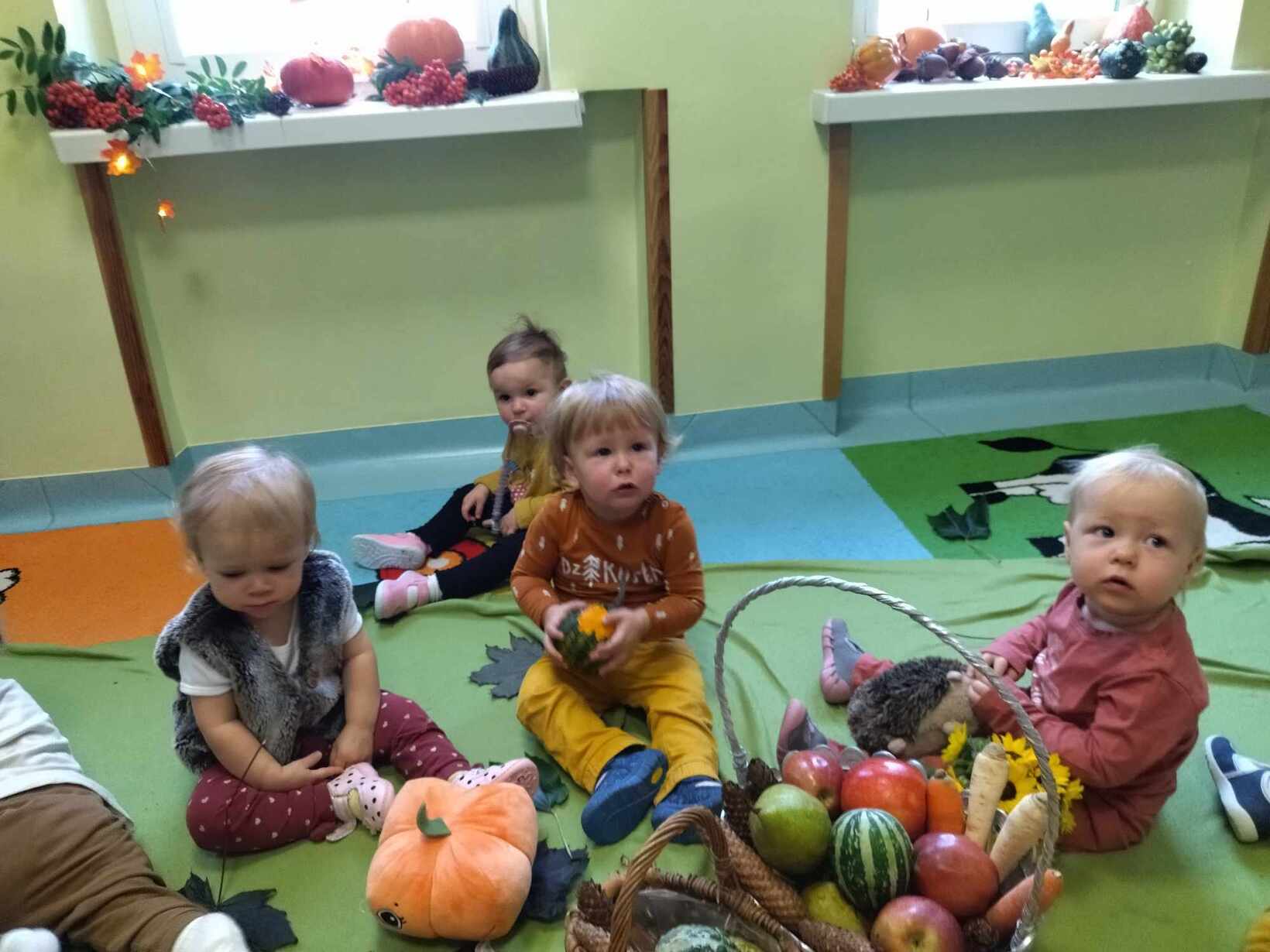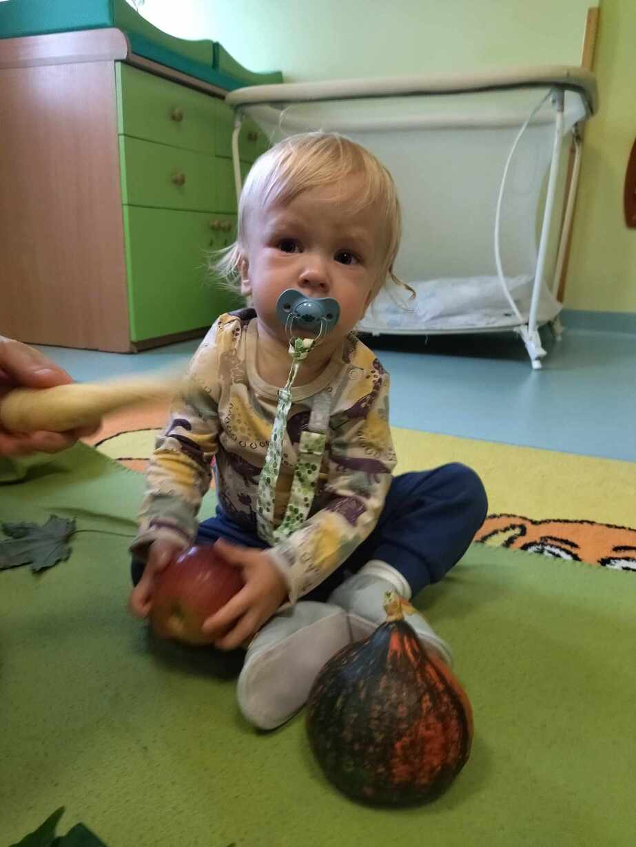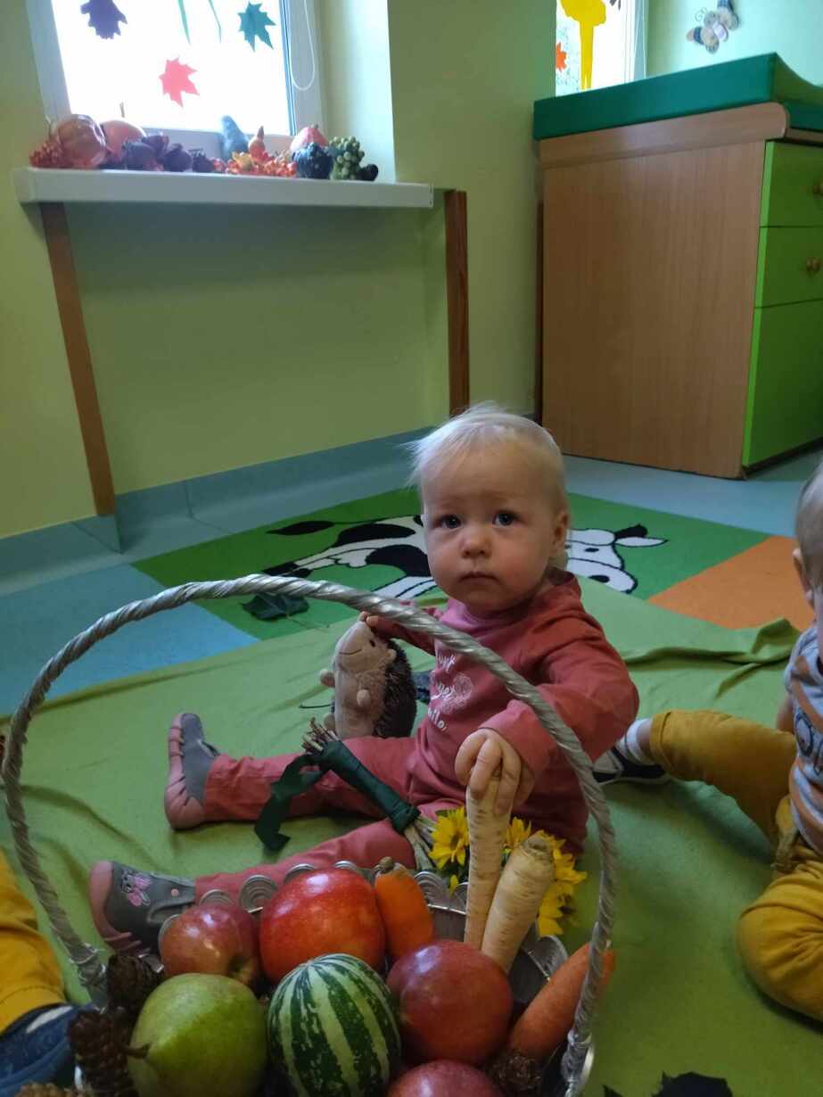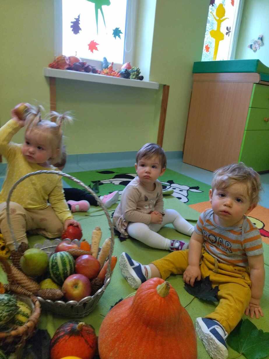 W dniu dzisiejszym dzieci z grupy,, Żabki " zapoznawały  się z darami  jakie przyniosła Pani Jesień.
