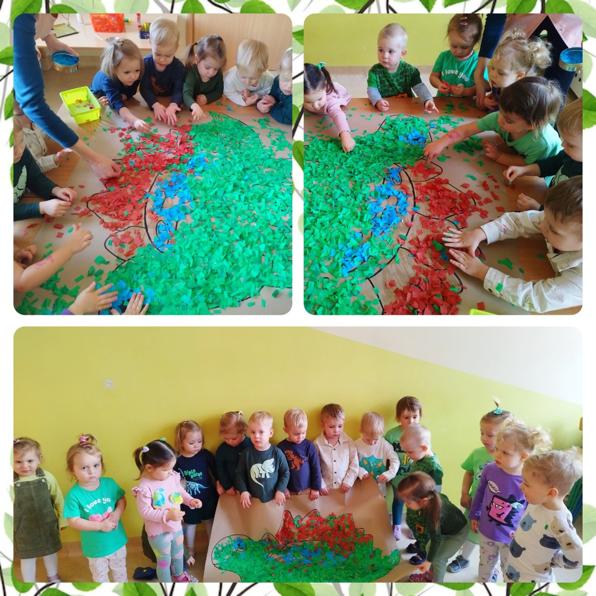 Na koniec zajęć wspólnie wykonaliśmy podobiznę wielkiego dinozaura z bibuły.
