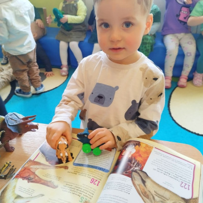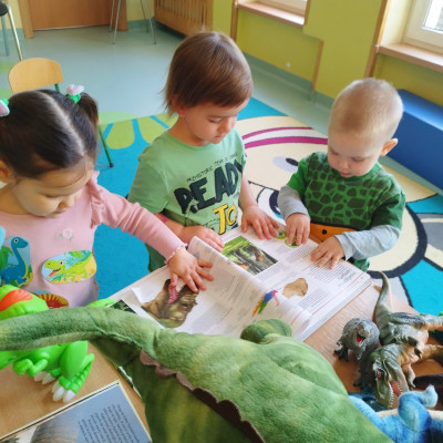 Dzieci poznały różne gatunki dinozaurów, jak wyglądały, co jadły oraz co się z nimi stało.