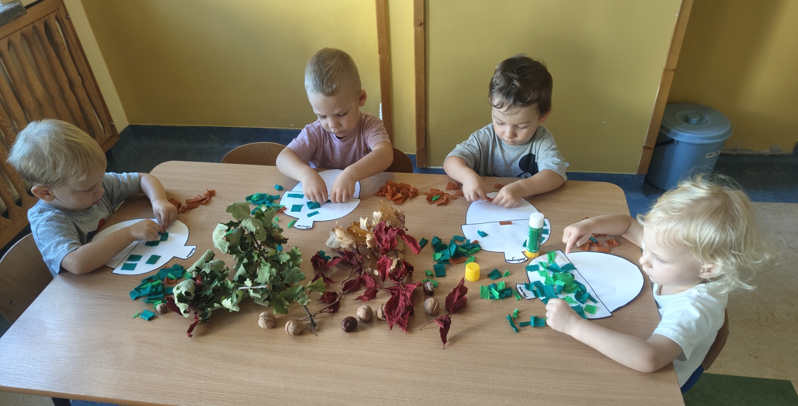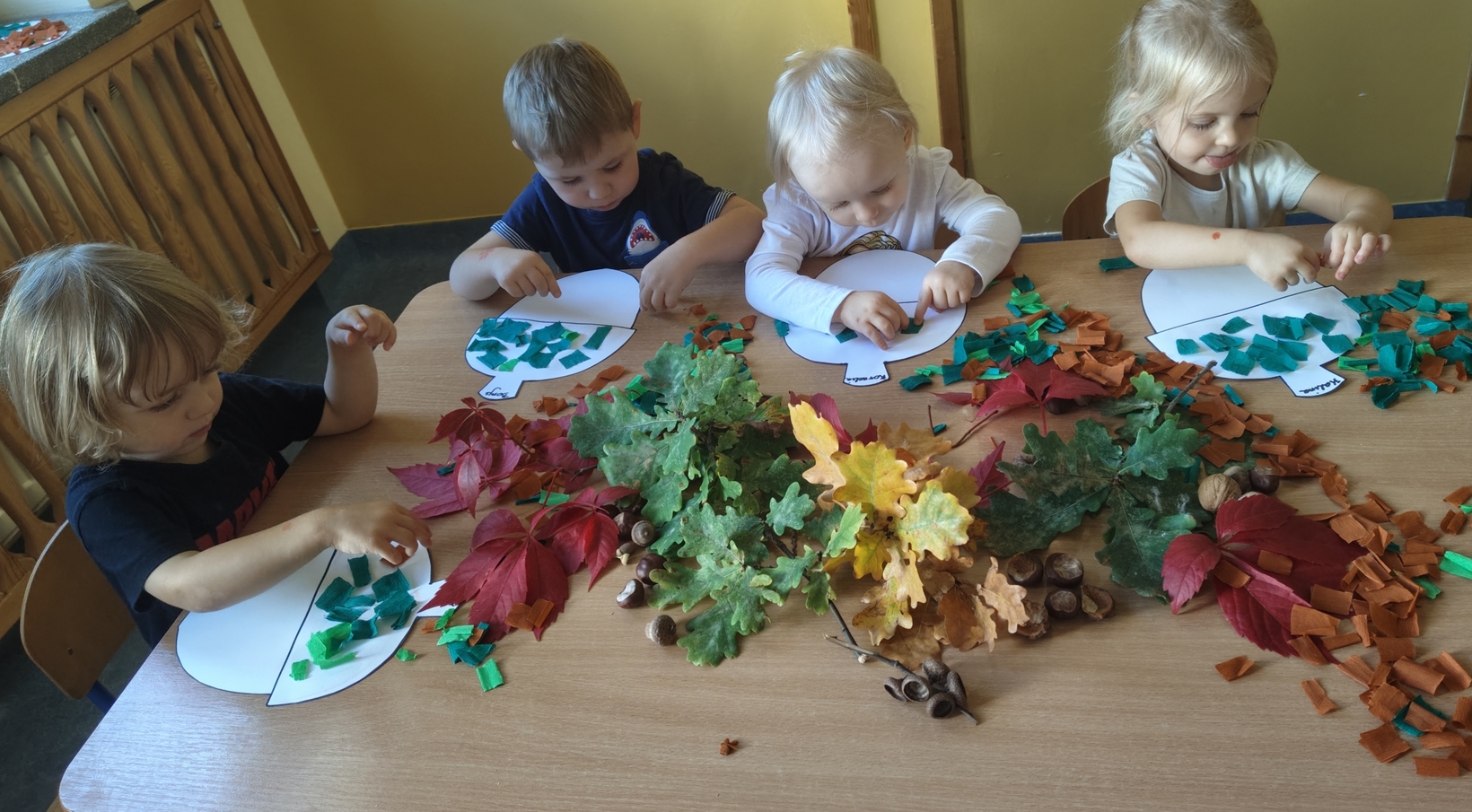 Czy jest z liśćmi, czy z igłami, rozłożyste, z gałęziami, rośnie samo lub też w lesie, piękno swoje dumne niesie. Dzień drzewa w grupie" Pszczółki "