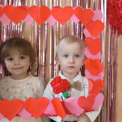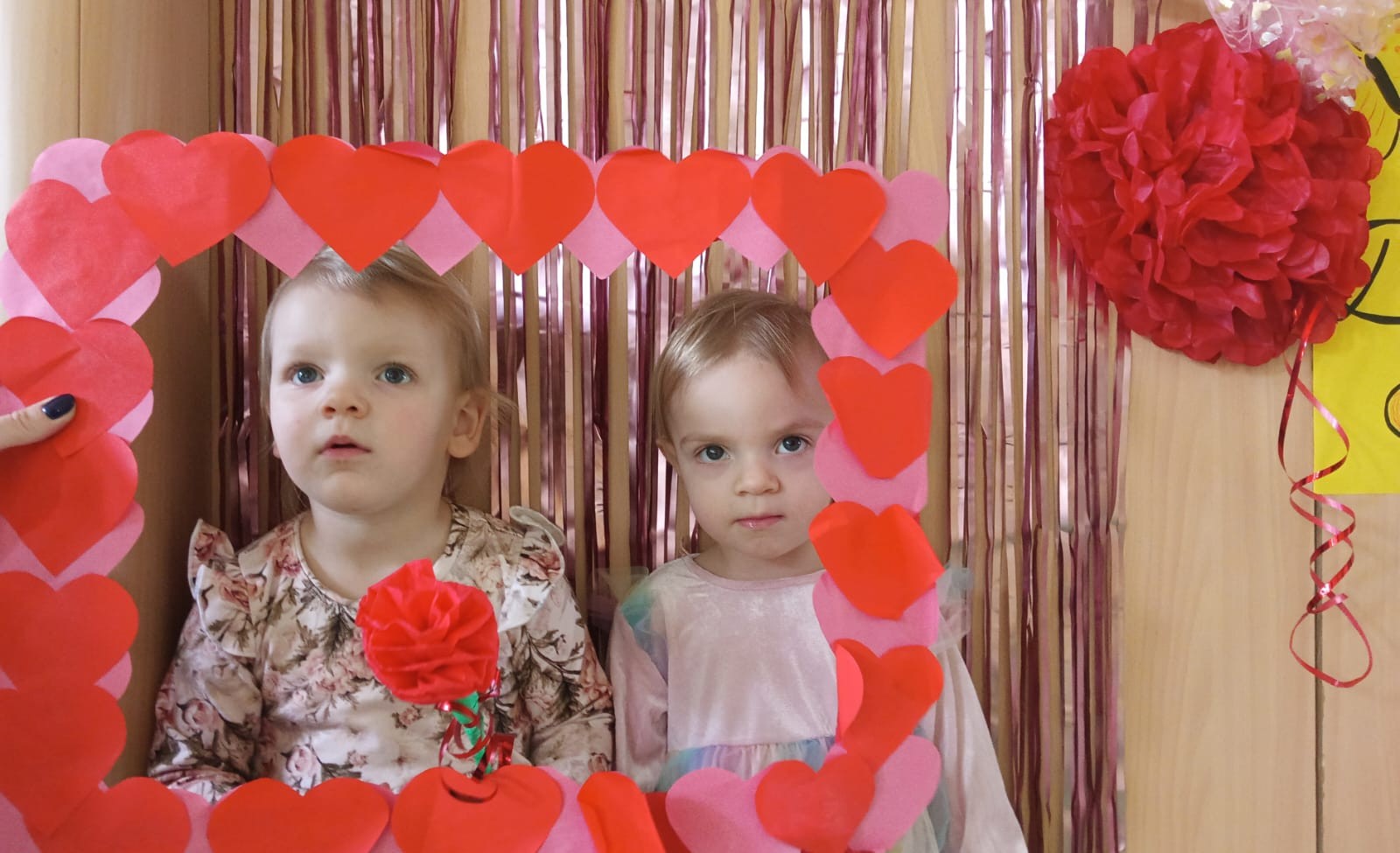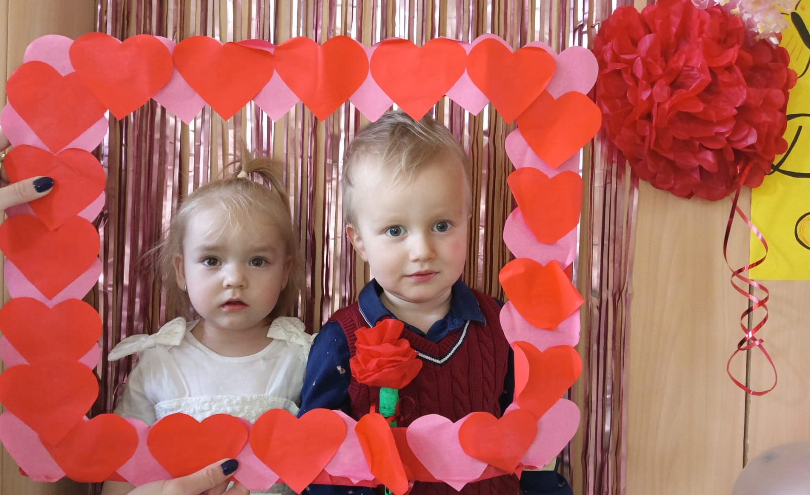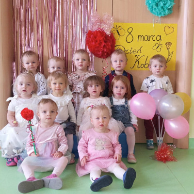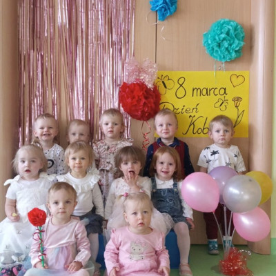 Zdjęcie przedstawia dzieci podczas sesji zdjęciowej z okazji Dnia Kobiet.