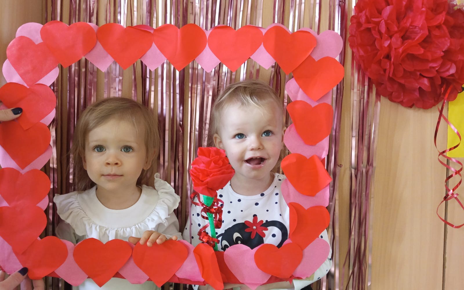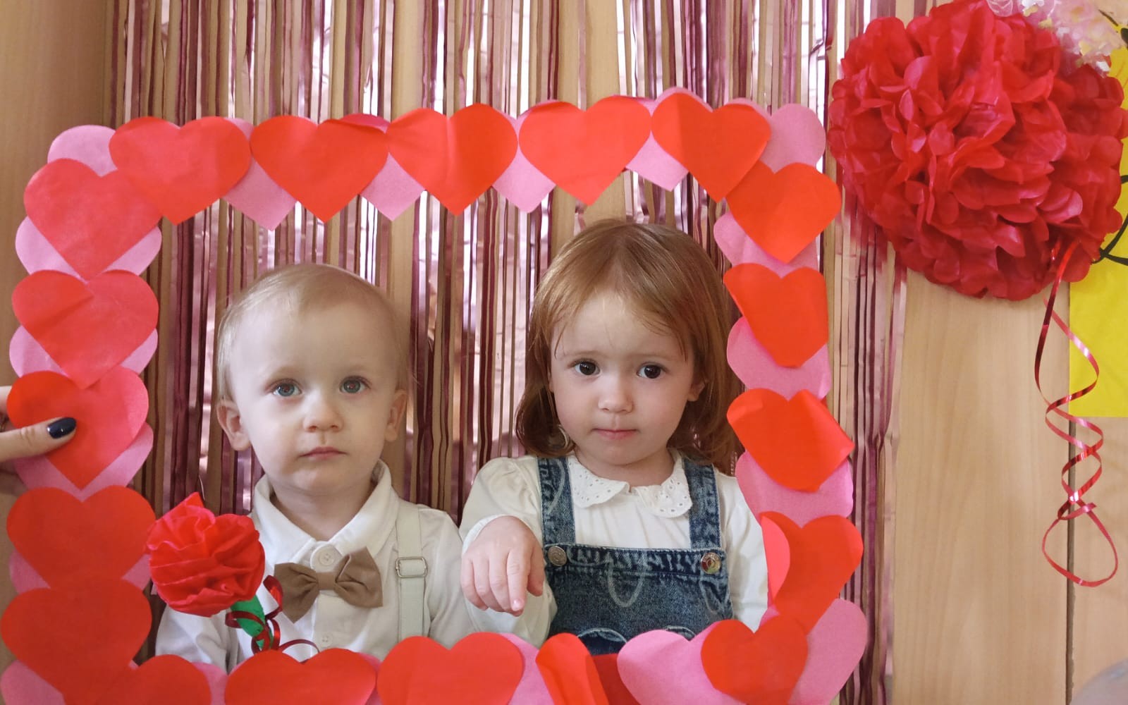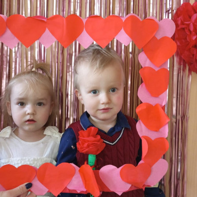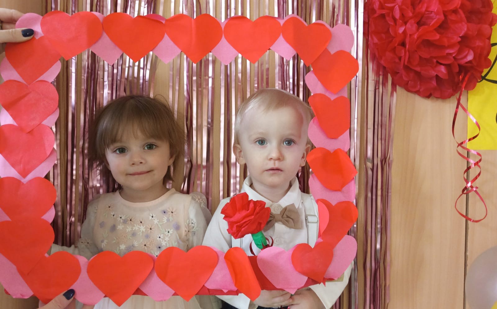 Zdjęcie przedstawia dzieci podczas sesji zdjęciowej z okazji Dnia Kobiet.