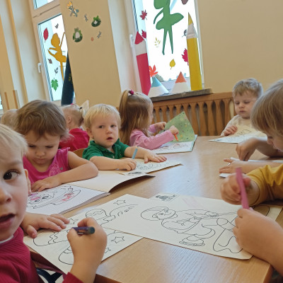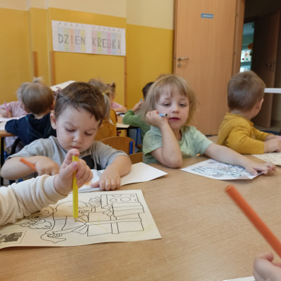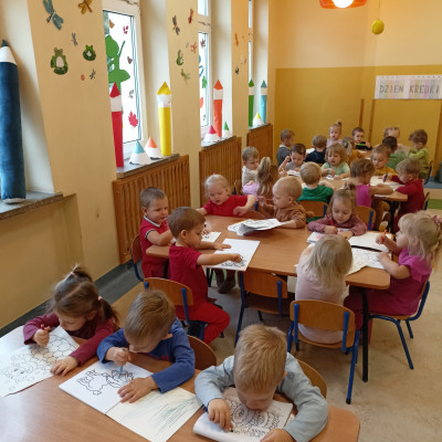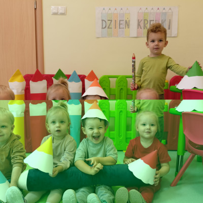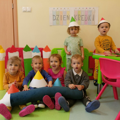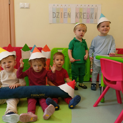 Dzień Kredki. W tym dniu odbyło się wspólne kolorowanie kredkami oraz zabawa i piosenki towarzyszyły nam przez cały dzień. Było bardzo ciekawe i kolorowo.Wszystkie dzieci były ubrane na swój ulubiony kolor.