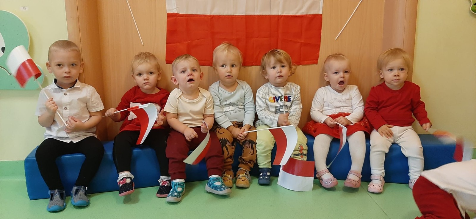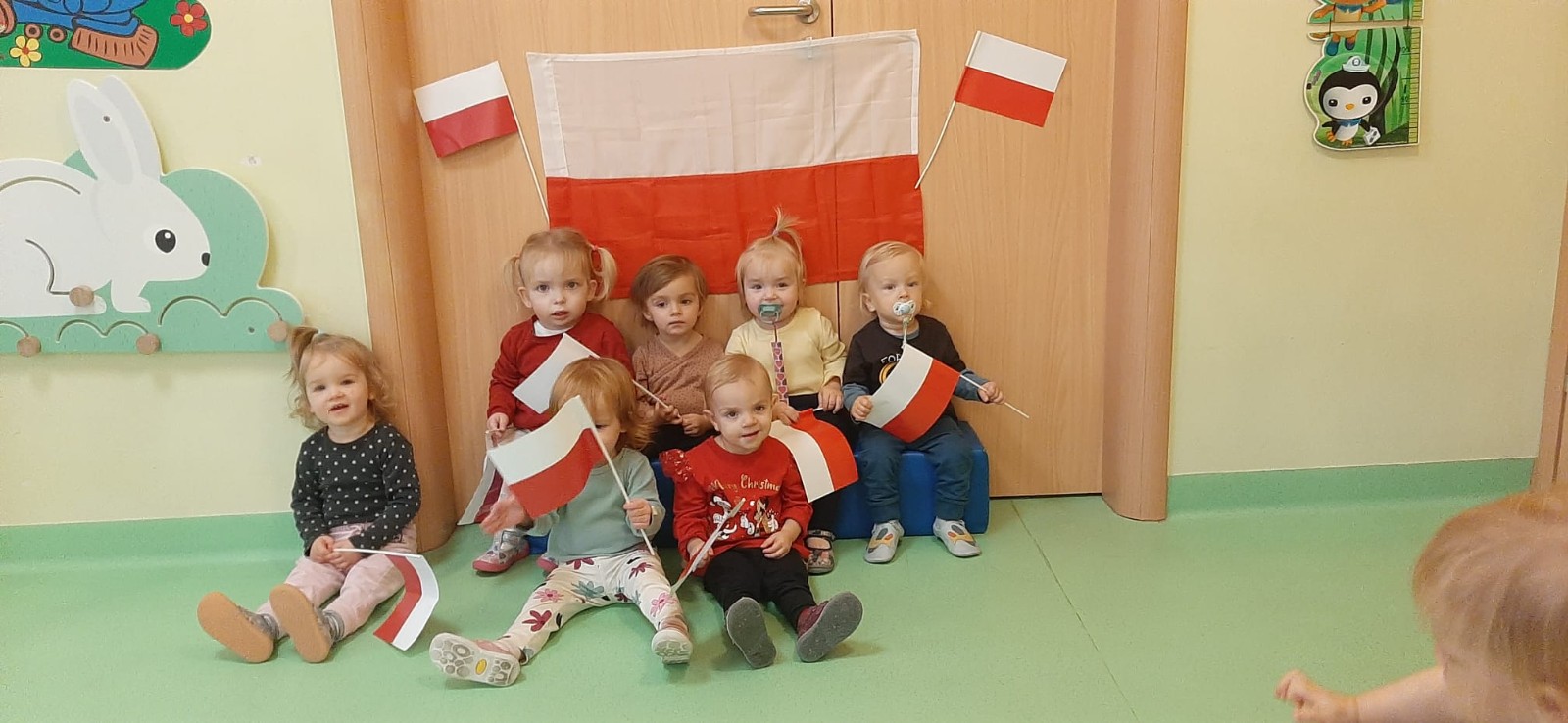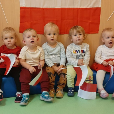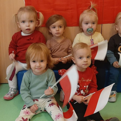 W dniu 08.11 na grupie biedronek był celebrowany DZIEŃ NIEPODLEGŁOŚCI. Dzieci pozowały do wspólnego zdjęcia w strojach biało - czerwonych symbolizujące barwy Polski. Razem z opiekunkami odsłuchały hymn Polski oraz wierszyk Polak mały. Dzieci miały dużo frajdy i radości.